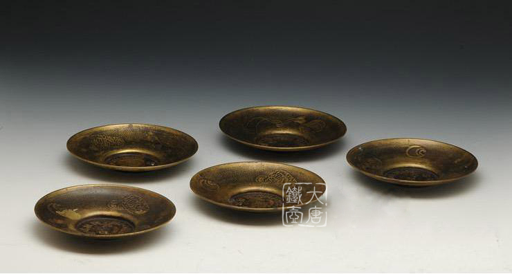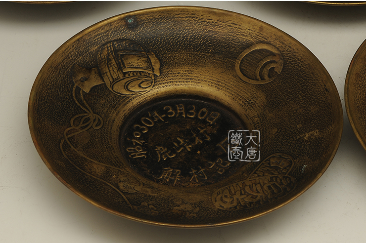 昭和時(shí)期解村紀(jì)念銅茶托五件套 [ 編號(hào):45614 ]