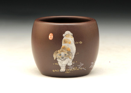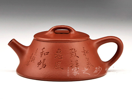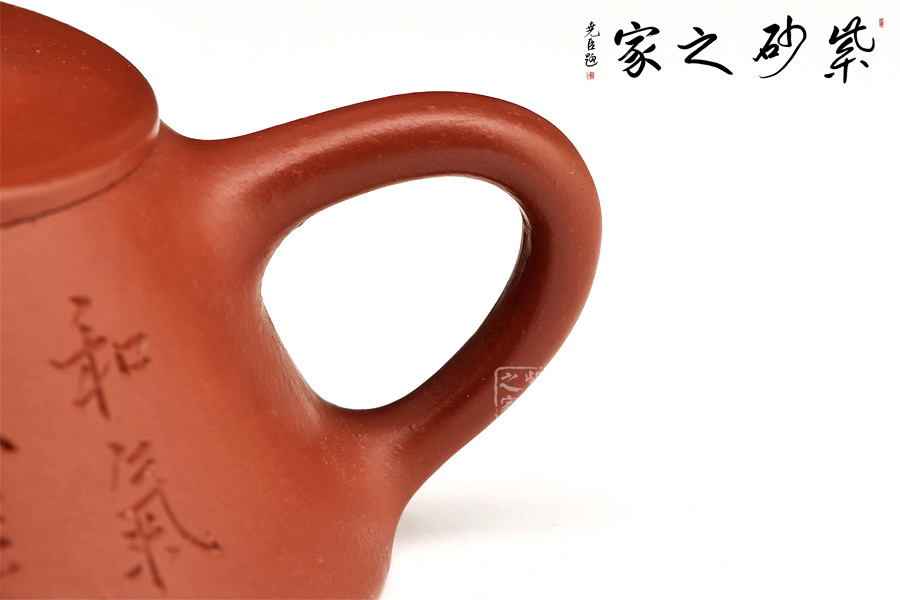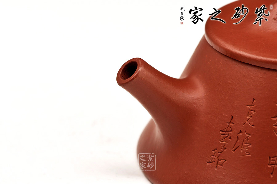 特點:質(zhì)感綿密、緊實細(xì)緻,持之扎實沉重、紅潤豔麗,泥中極品,無以倫比;泥胚含少許原礦顆粒,沖淋熱水后色變極大,呈紅中帶紫,養(yǎng)壺易現(xiàn)“包漿”之美。