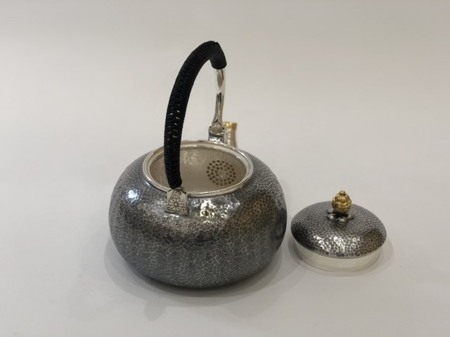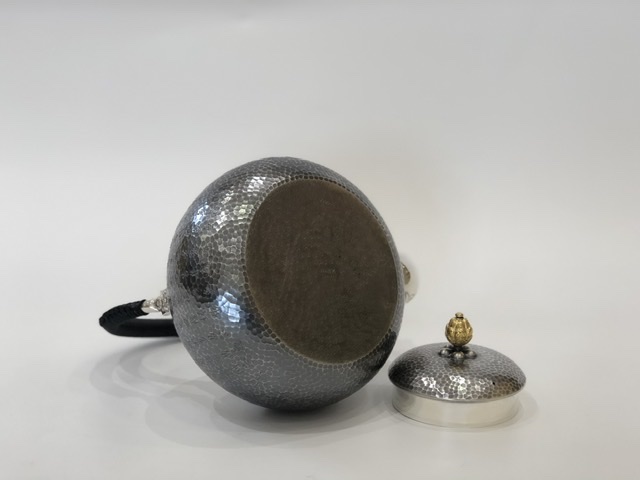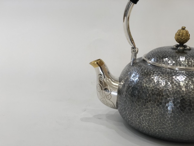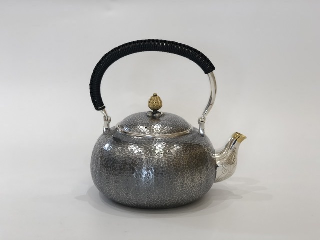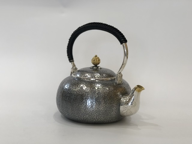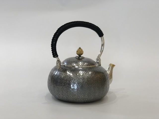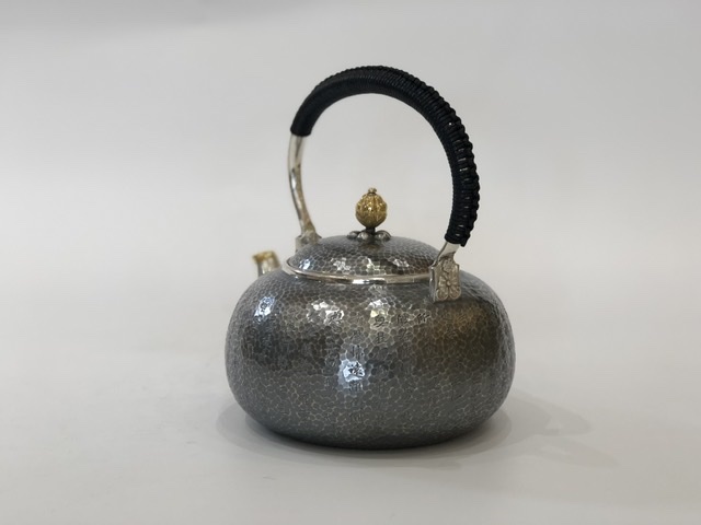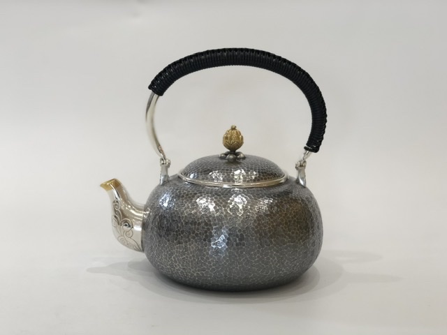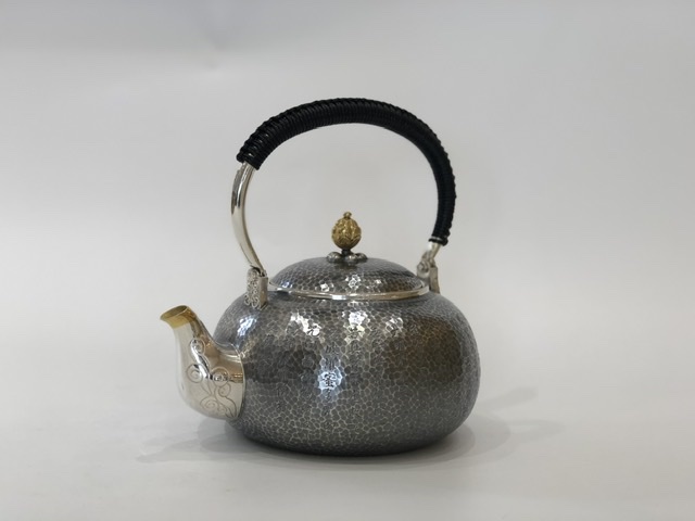 產(chǎn)地:中國(guó) 堂口:小笠銀器 材質(zhì):純銀 工藝:薰銀 容量:1200cc 重量:765g