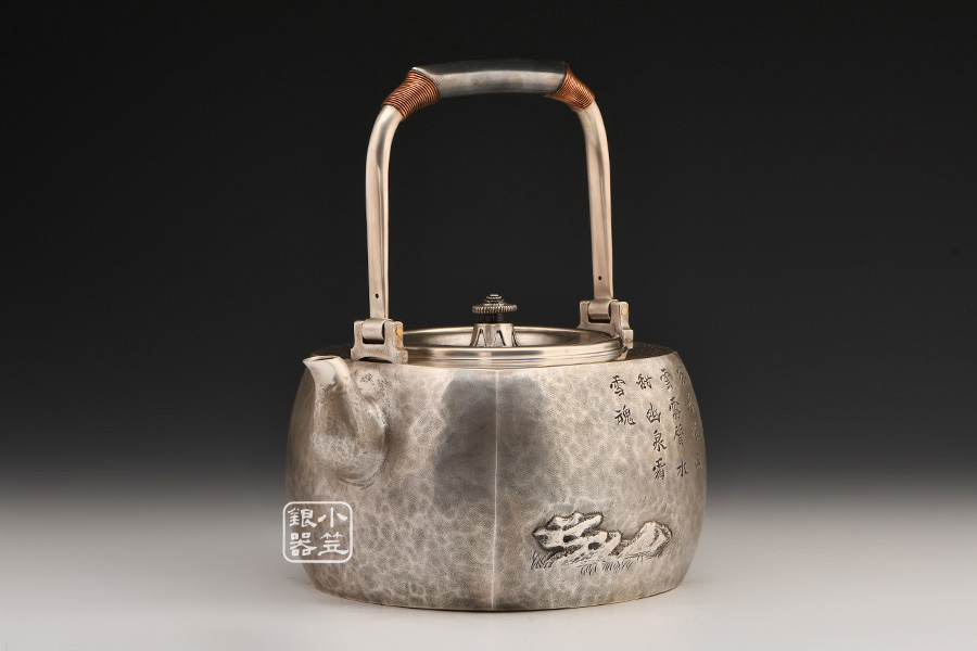 銀壺的制作是段六一對(duì)小爐匠傳統(tǒng)的傳承,也是金屬工藝的集大成。一張打、片打出等技術(shù),鏨刻、雕花、成形等工藝看似簡(jiǎn)單,實(shí)則需要深厚的工藝基礎(chǔ)。銀板多半毫則太后,銀板少半毫則太薄。收口不到位則銀壺出水不流暢,鏨刻少了藝術(shù)功底則暗淡無(wú)光。從佛像到佛塔,從藏刀到到壁畫(huà),段六一40年來(lái)對(duì)工藝的苛求最終在銀壺上得以集合。正是由于工藝的繁復(fù)和精準(zhǔn),手工藝人們才說(shuō)“做好了銀壺,才是一個(gè)合格的手藝人”。