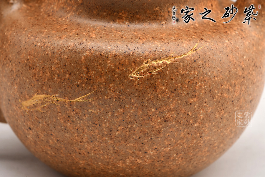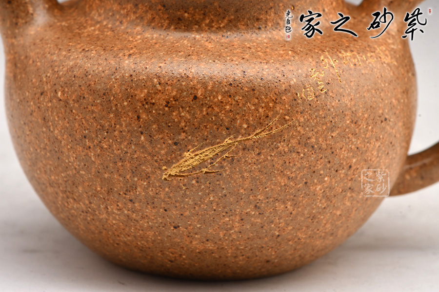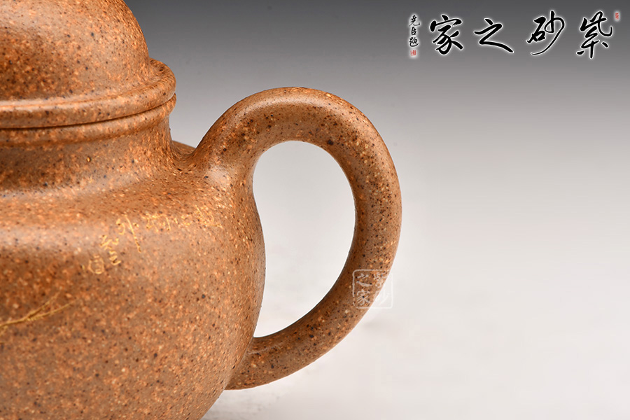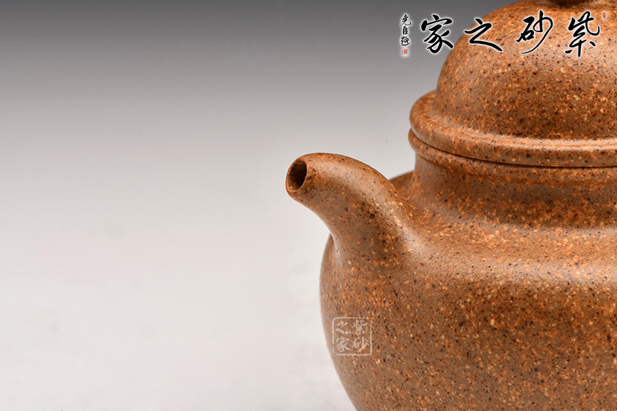 其造型以?xún)?yōu)美弧線構(gòu)成主體,線條流暢,視覺(jué)感也極為舒適。整把壺穩(wěn)健豐潤(rùn),氣度大方,耐人尋味而神韻俱足,實(shí)乃一代良工佳作。高溫段泥制作,身似鐵,造就掇球壺色澤上的另一種美!