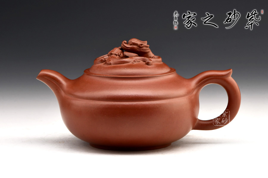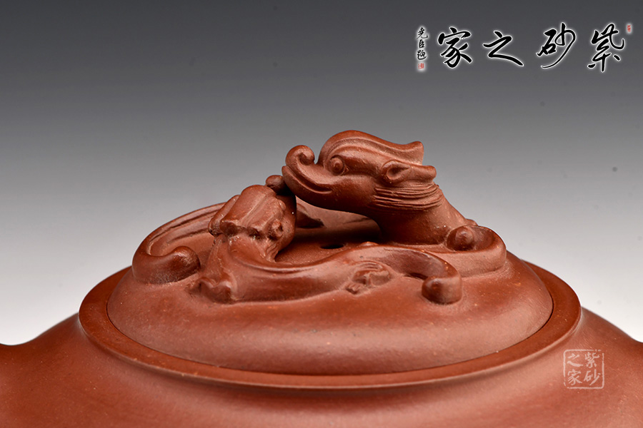 滑肩、嵌蓋,壺鈕以“蒼龍教子”場景為形,雕刻生動(dòng),栩栩如生,很容易就讓人從中感覺到父與子的舐犢情深。