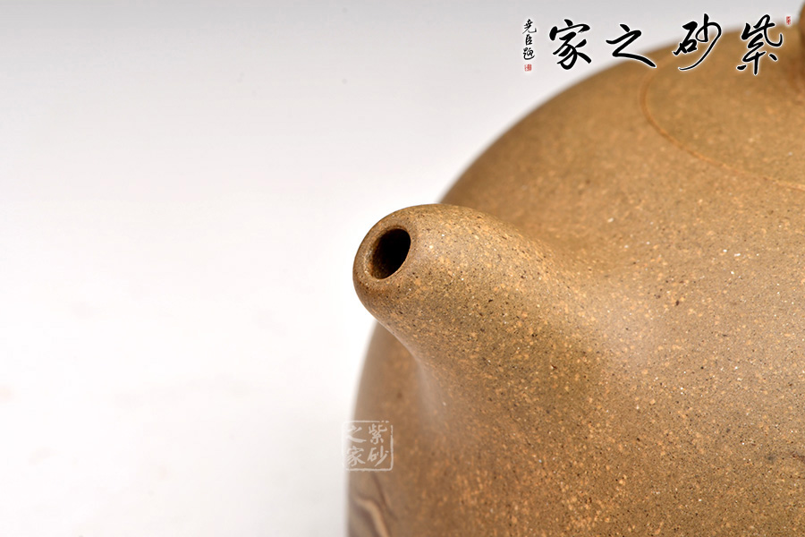 泥性:感甜嫩綿密,質堅而溫潤,呈近田黃色調,為江蘇宜興趙莊山系朱泥礦~黃石黃之共生礦,經(jīng)挑揀練製而成,因含鐵量只達6%左右,致陶之后呈“金田黃色”。