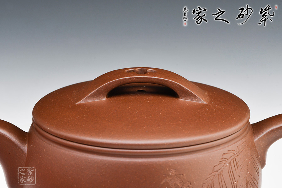 這是一款經(jīng)典器型,選文革紫泥制作,成熟穩(wěn)重,親和力佳。漢瓦作為具有深厚文化底蘊(yùn)的素材,在紫砂壺中得到很好表現(xiàn)與提升。