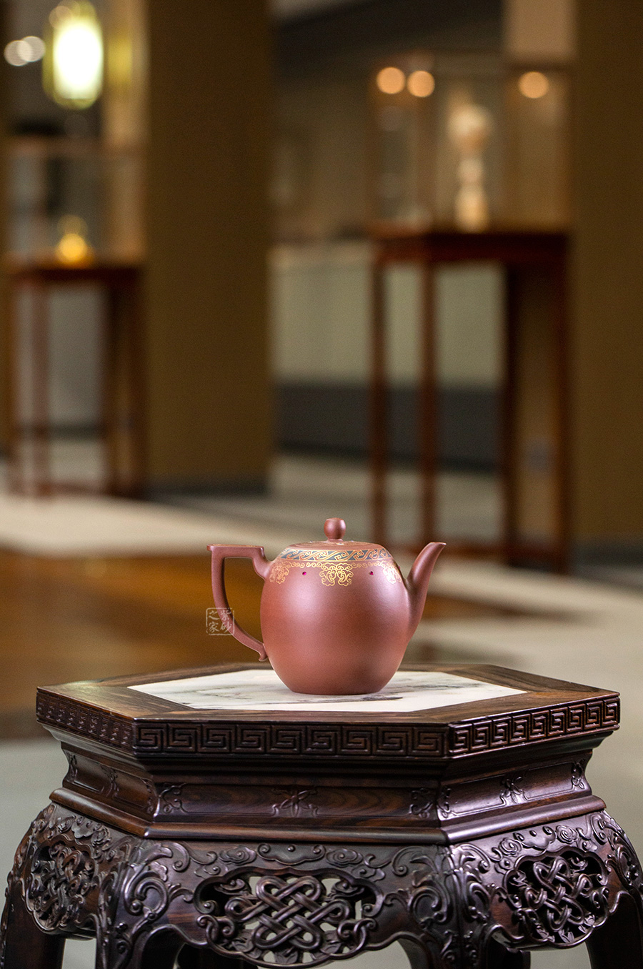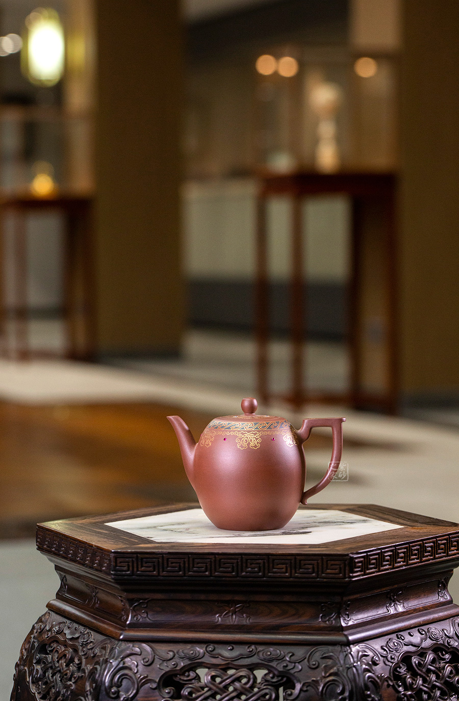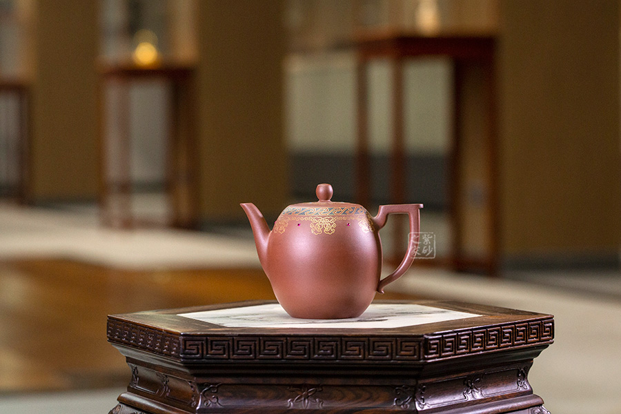 以鑲金工藝,做祥云朵朵作為裝飾,壺蓋上置八卦回紋,既增添瑞氣,又增添美感!