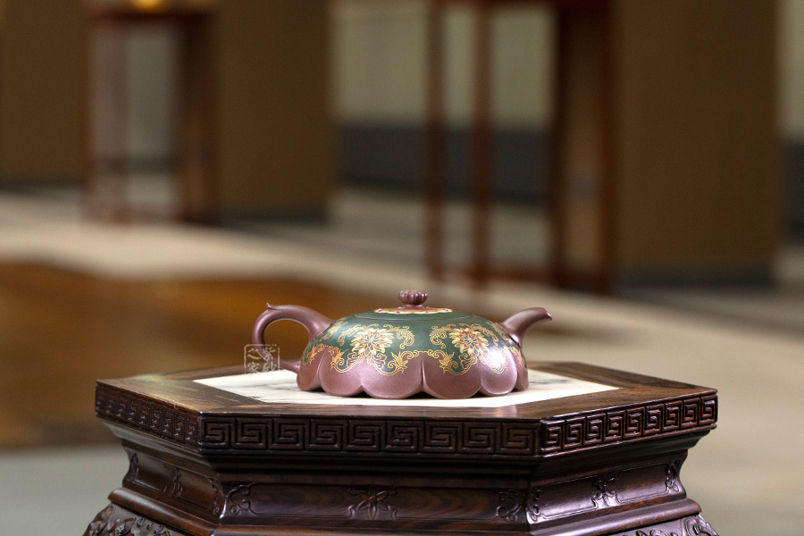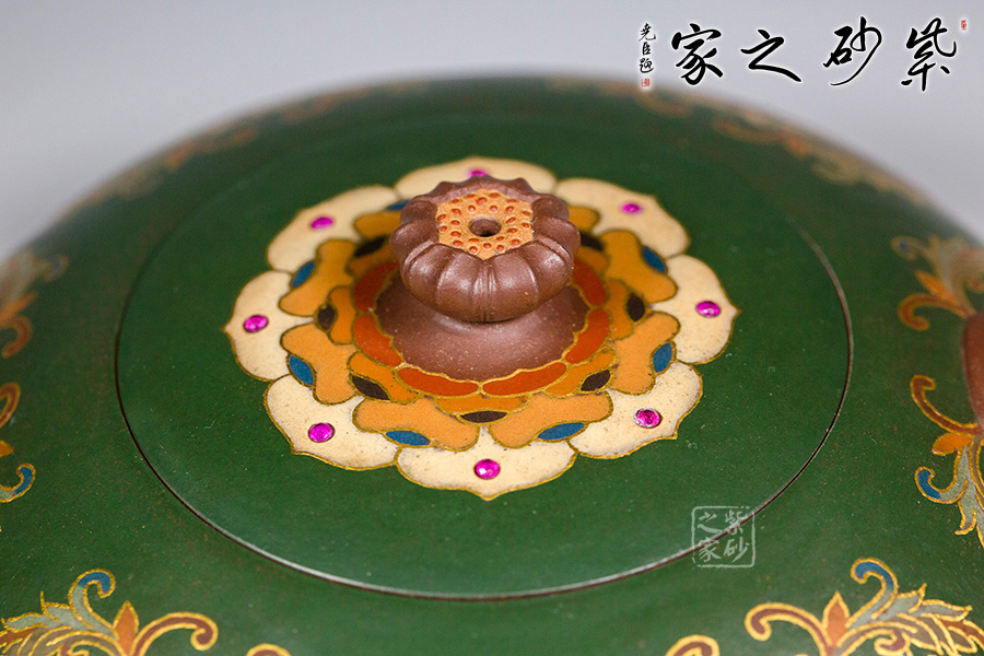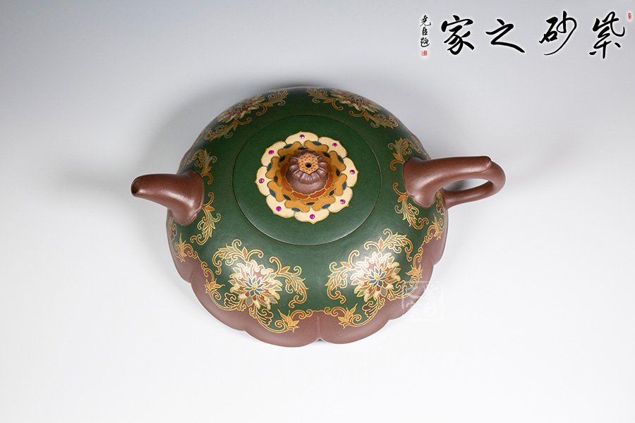 近年來(lái),季益順手中的一捧泥,是他對(duì)中國(guó)千年歷史的感悟,《心心向陽(yáng)》,《百寶壺》,《玉金砂》等系列作品的推出,憑借金絲鑲嵌與五色土填充,以及古代寶石鑲嵌復(fù)雜技藝,不僅提升紫砂壺的雍容華貴之感,更讓其作品物超所值,珠光寶氣,讓作品價(jià)值的體現(xiàn)更多的是因?yàn)槠浔旧淼墓に嚺c創(chuàng)意。