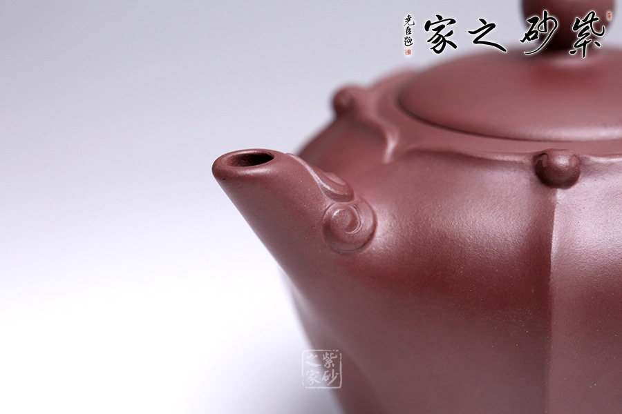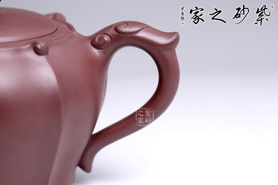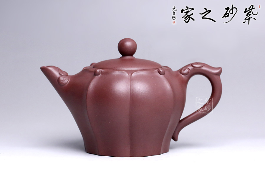 此壺以中國傳統(tǒng)文化中富有吉祥之意的四季如意為主題,壺身筋紋線韻通達(dá),精美雅致,造型略見繁復(fù),難度極大,完全手工而為,足見老師手上功力。壺嘴、壺把均點(diǎn)綴如意紋,簡明清晰,執(zhí)握有力。壺蓋與口沿嚴(yán)絲合縫,蓋面飽滿。整體造型別致,款式經(jīng)典,工藝細(xì)致。寓意四季如意,傳達(dá)最美好的祝福之意。