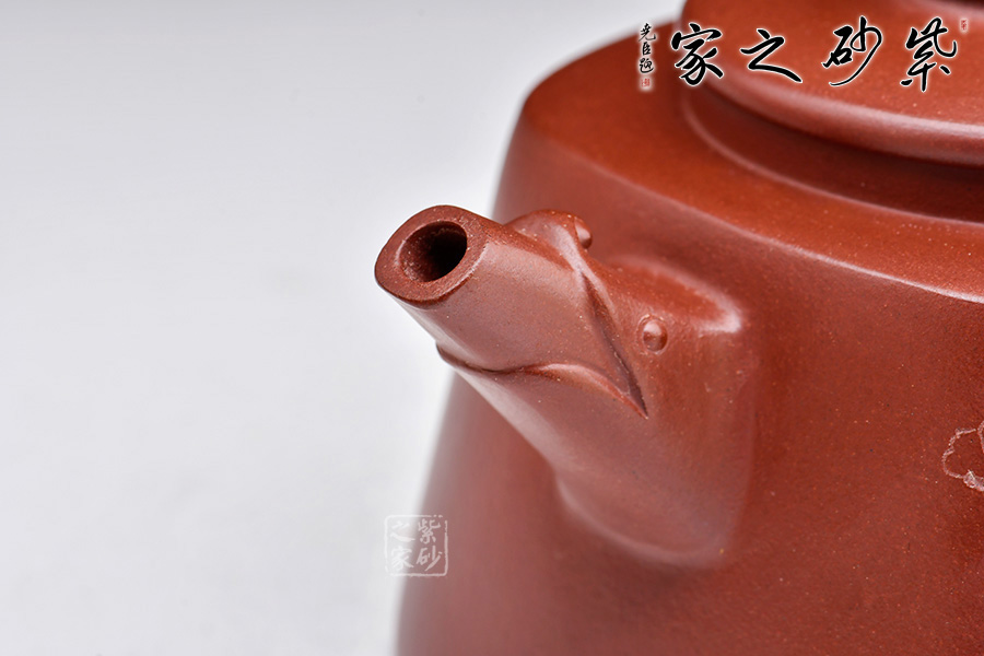 此壺名為“四方祥瑞”,壺身四方型豐斂自如,直中有曲、曲有中直,方中寓圓,其處理手法獨特,彰顯出作者純熟的功力。
