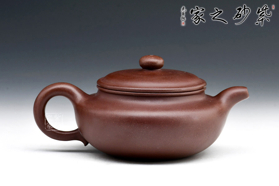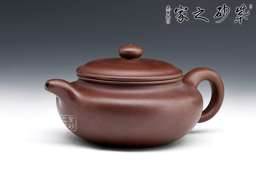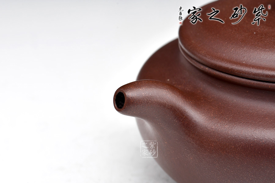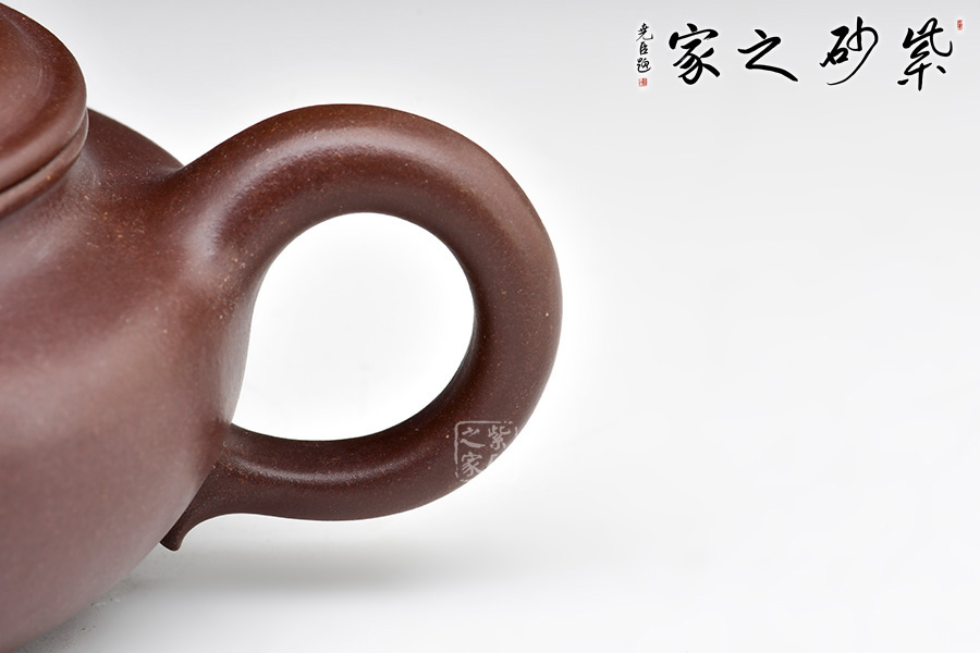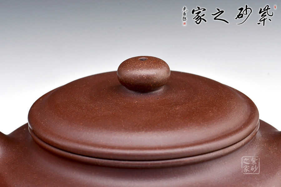傳統(tǒng)器型。扁圓壺鈕、彎流、飛把,線條圓潤(rùn),但見柔美。鼓蓋,竹片推出的卷沿,其工藝過程極為復(fù)雜,非外行人士所知。口蓋密封性極強(qiáng),泡茶不必?fù)?dān)心溢出,方便實(shí)用。