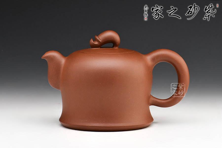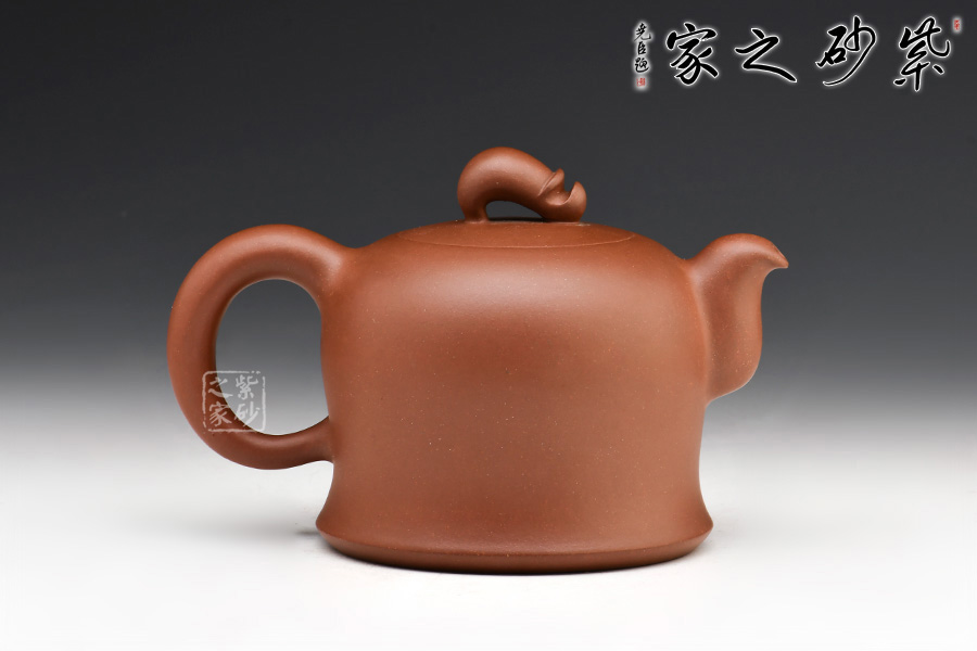 壺身似一個圓鐘造型,流與把在同一水平線,截蓋與整體融為一體,壺鈕為點睛之筆,似一個小人,制作十分精良。