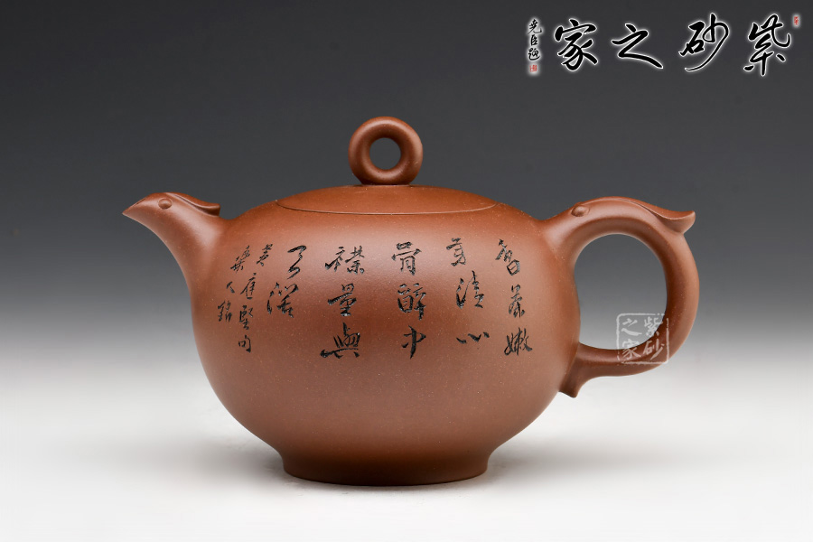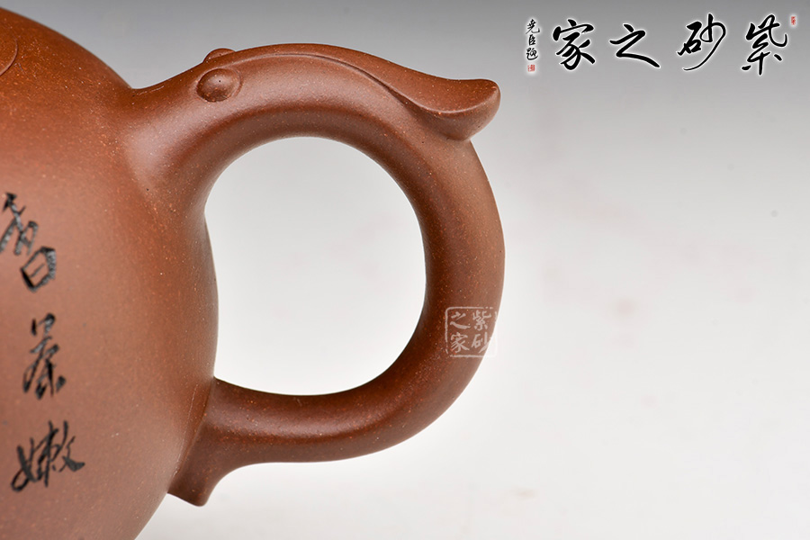 此壺壺體端莊古樸,線條優(yōu)美流暢,出水好,手感佳,采用原礦紫泥手工制作而成。 壺身飽滿圓潤,線條流暢;彎流似鳥嘴,設計獨特,一雙眼睛炯炯有神;飛把設計鮮明,似尾。整壺從正面看整壺似一只鳥,仰首挺胸。壺鈕精致小巧,細膩的材質,簡練的線條,塑造了一個圓的造型;壺底為圈底,挺拔壺身。