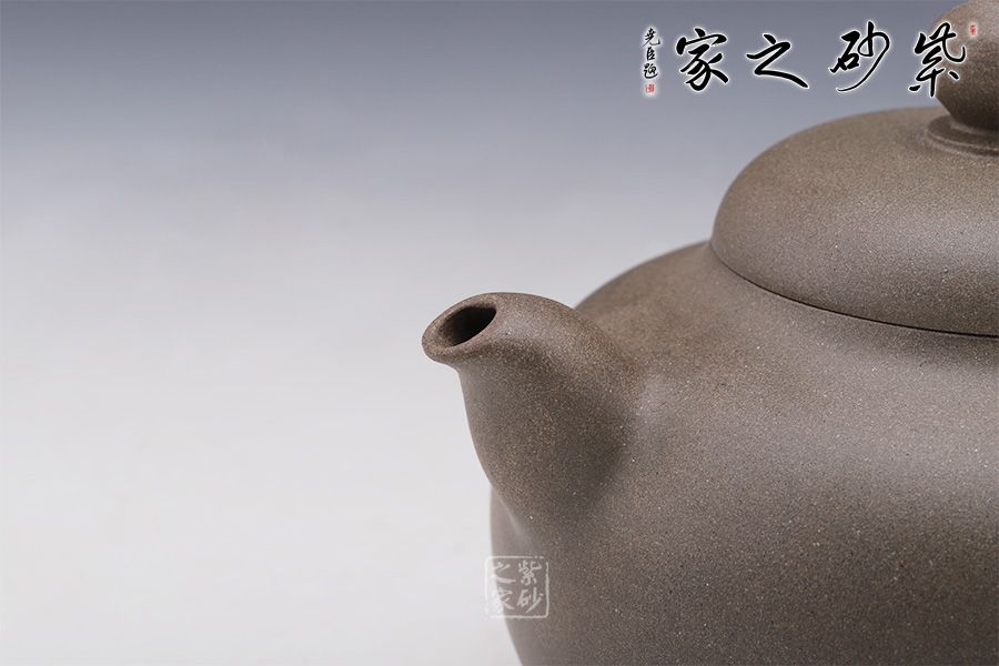 作品線條簡(jiǎn)練,形體淳樸凝重,此壺設(shè)計(jì)上獨(dú)居視覺魅力,明快虛實(shí)之間和諧統(tǒng)一,提攜舒適,線條柔和,造型雄渾肅穆。