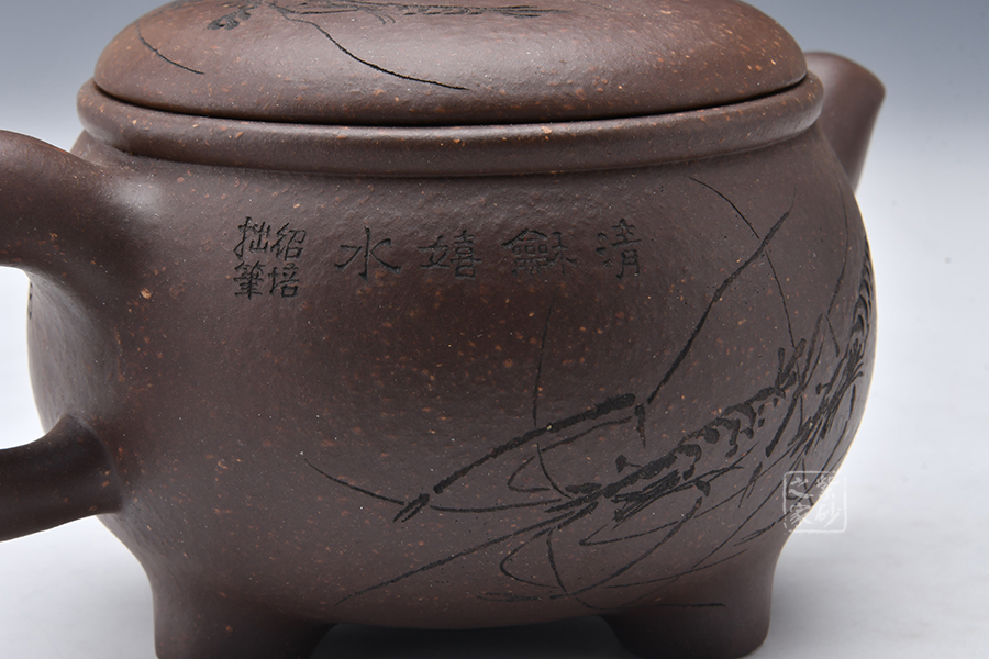 此壺精選老師家藏老泥拼紫泥,泥料運(yùn)用調(diào)砂工藝使泥料富有一種別樣的蒼勁質(zhì)感,此壺名為“好運(yùn)來(lái)”寓意簡(jiǎn)單而吉祥,有祈福,幸運(yùn)的美意。此款造型簡(jiǎn)潔深厚而有神韻。一彎流嘴與壺身溫婉相接嘴型精巧別致憨厚有趣。壺底三足鼎立氣勢(shì)恢宏。收藏自用佳品。
