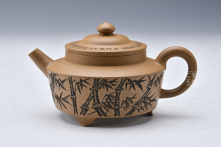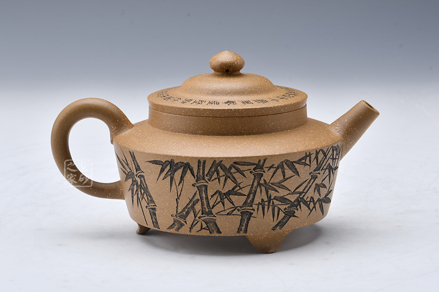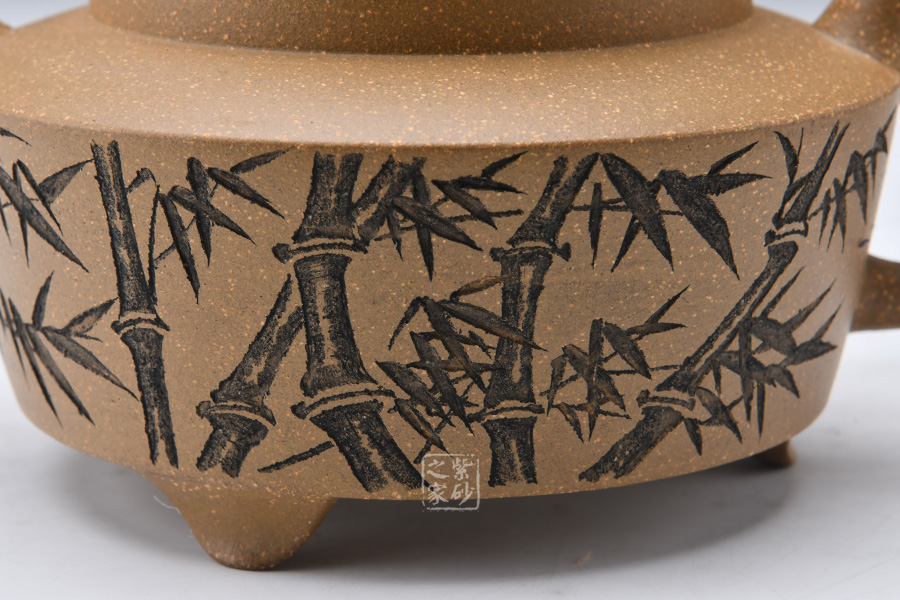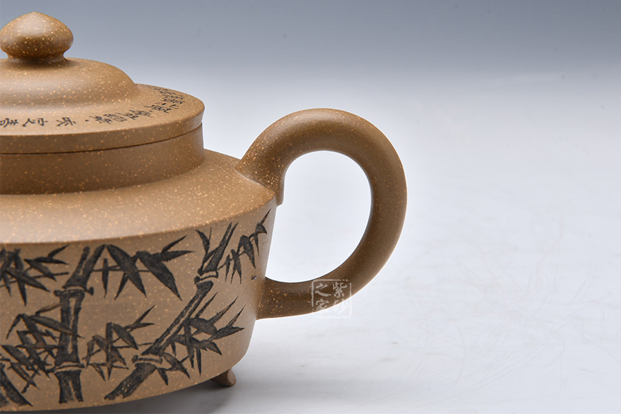 此壺采用原礦段泥料,壺嘴選用的直嘴,出水爽利,最為傳神的壺底設(shè)計(jì)的三足,使得壺更佳有活力,靈動,通體采用竹子為主題,加上清新淡雅的段泥,呼應(yīng)了謙謙君子。把玩品茗佳品。
