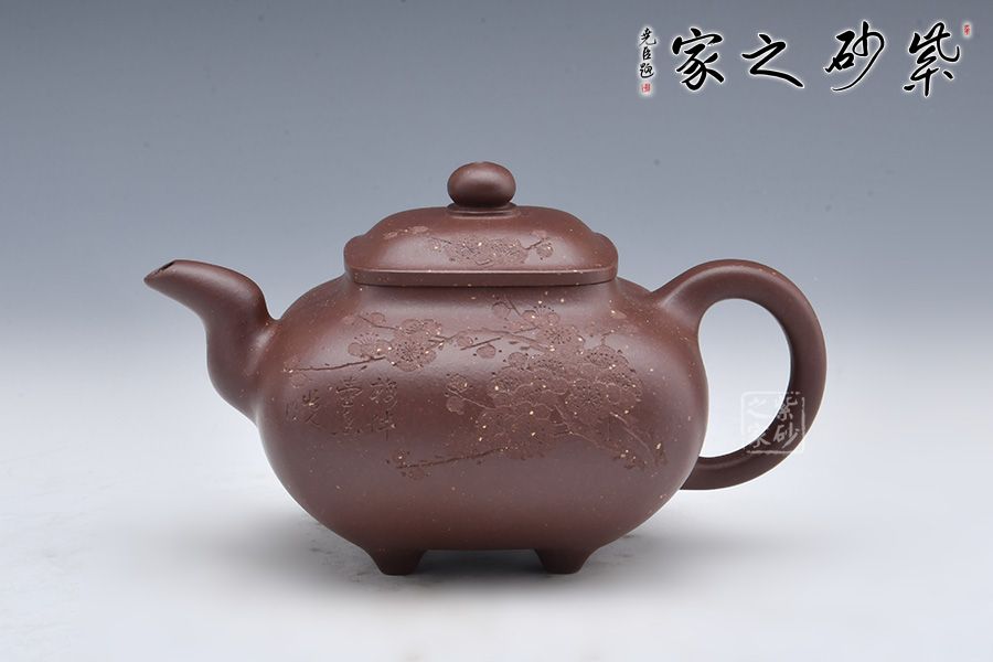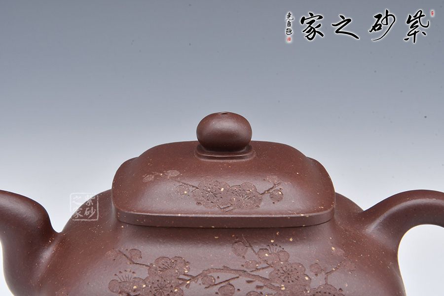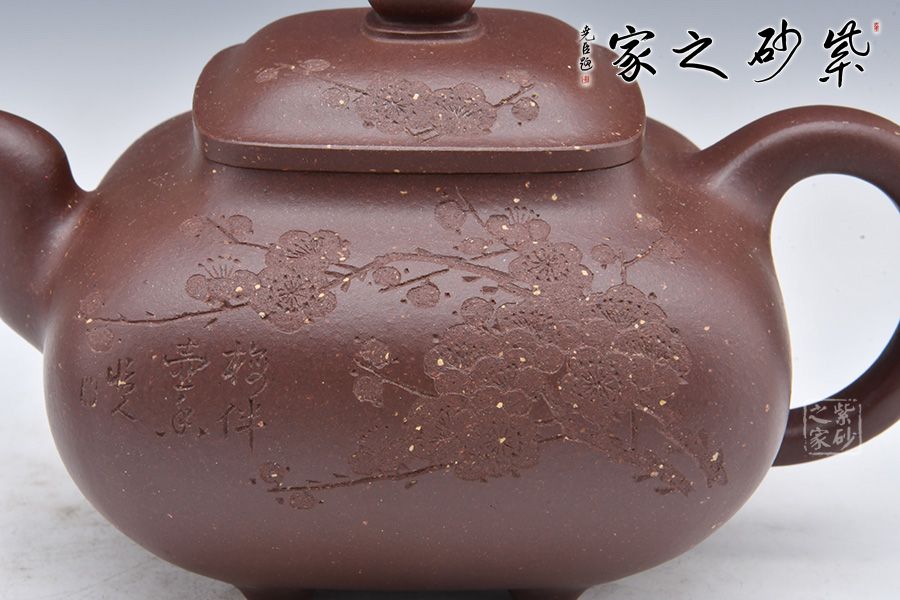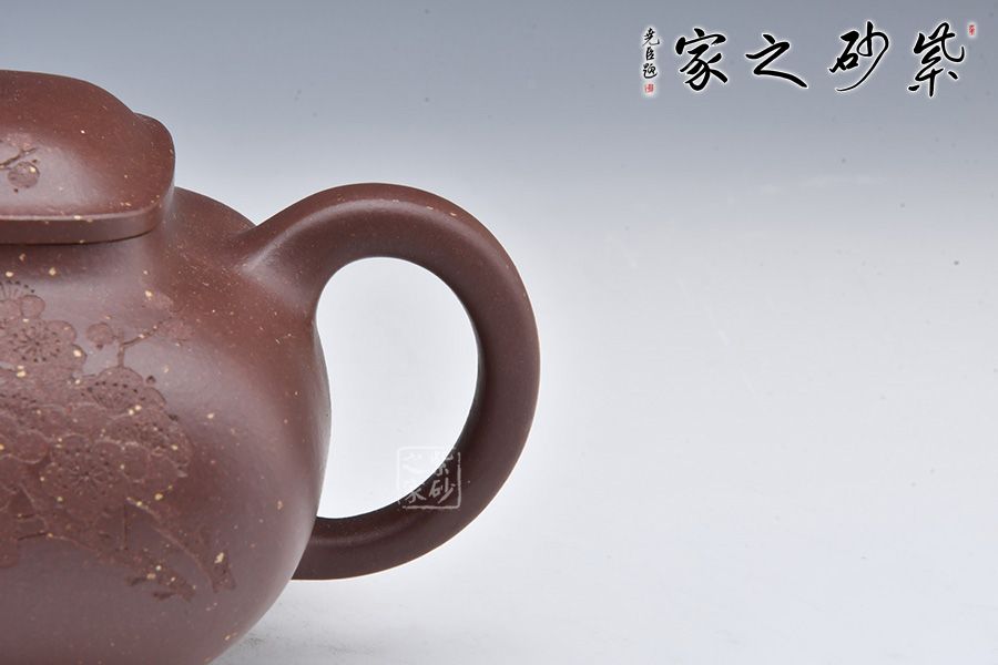 壺身由石陶愛女朱芊芊刻繪“梅伴壺香”,周身刻繪枝枝梅花,若有若無的香氣飄然而至。做工精細(xì),渾若天成,賞用皆宜,值得收藏。