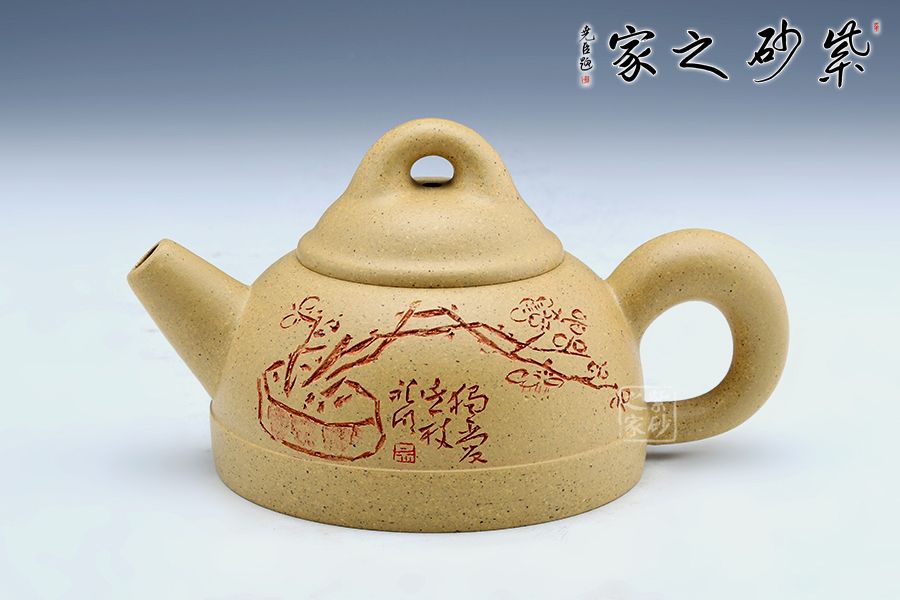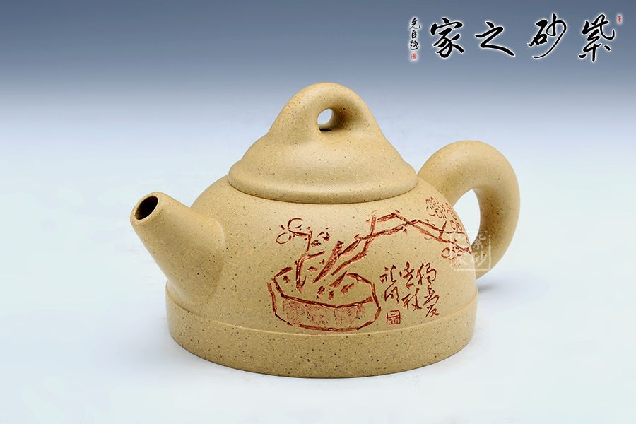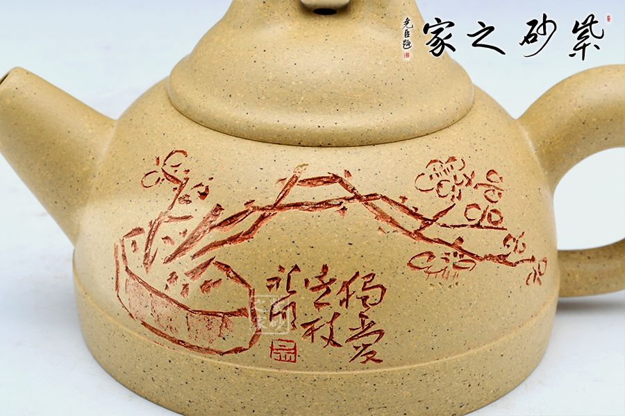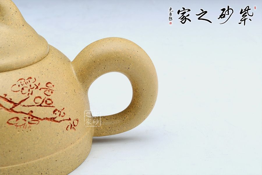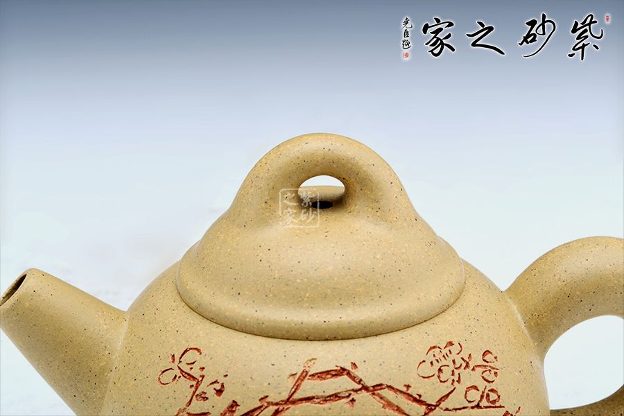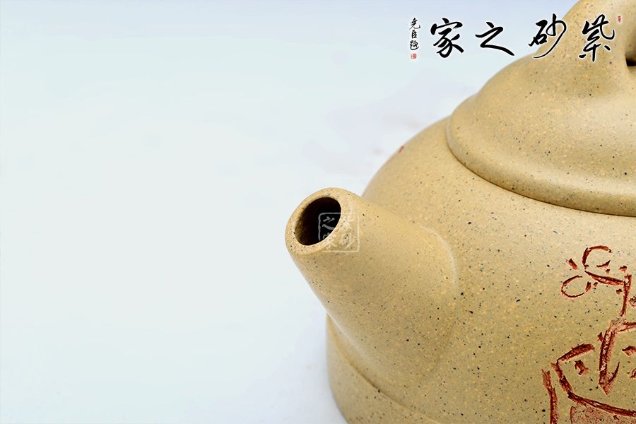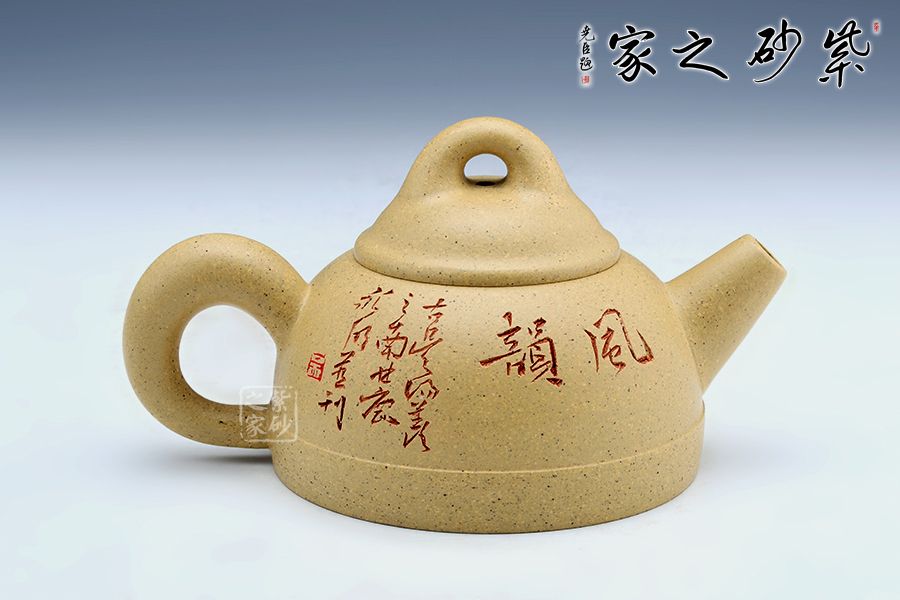 此壺以石瓢為基底設(shè)計(jì),融合了石瓢的俊美,壺身更加的飽滿圓潤,道洪風(fēng)格粗嘴粗把粗鈕的設(shè)計(jì)沉穩(wěn)厚重,憨態(tài)可掬。壺身一面花草一面刻繪“風(fēng)韻”二字,意境十足,直嘴出水爆爽,非常實(shí)用,適合把玩。