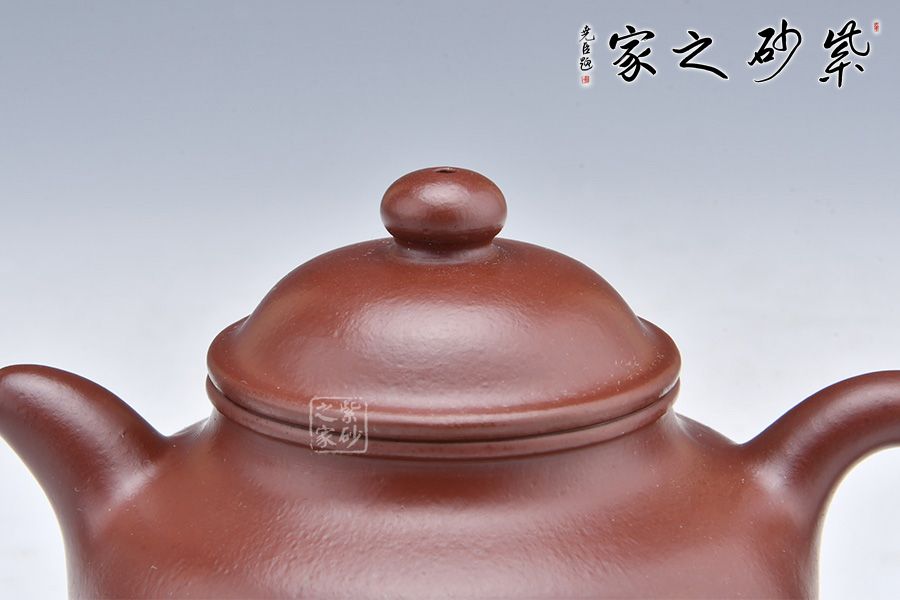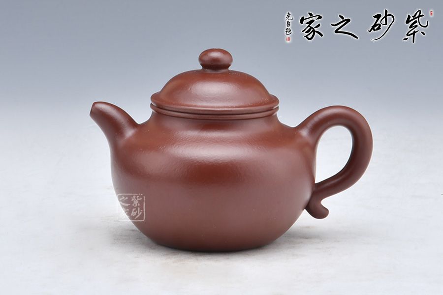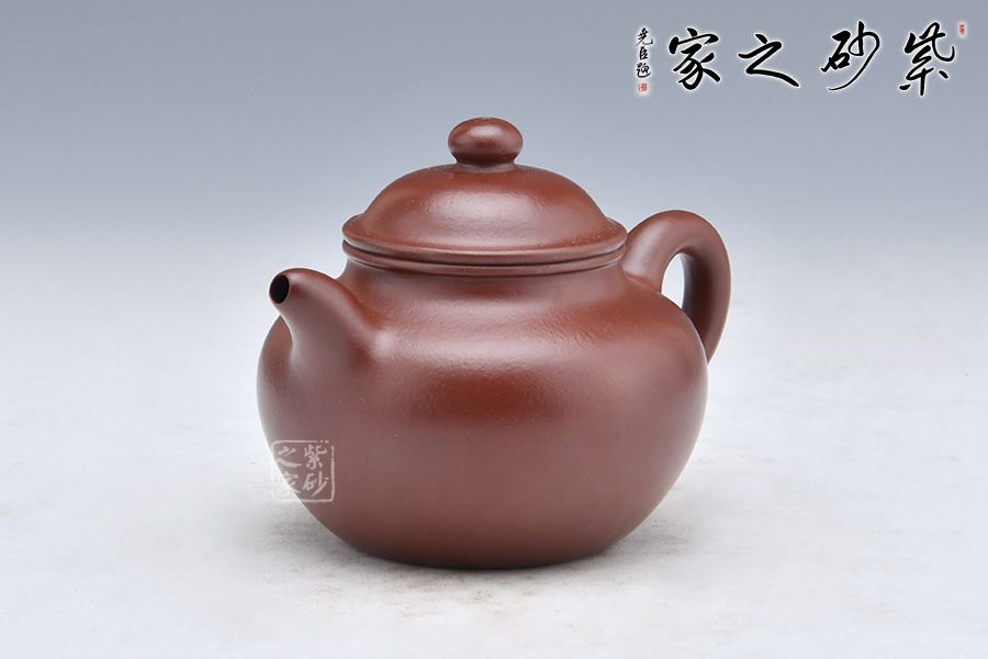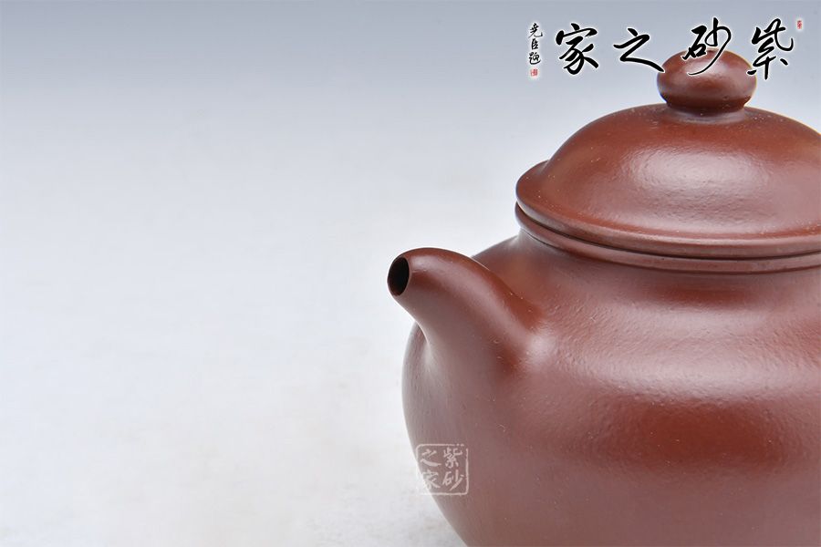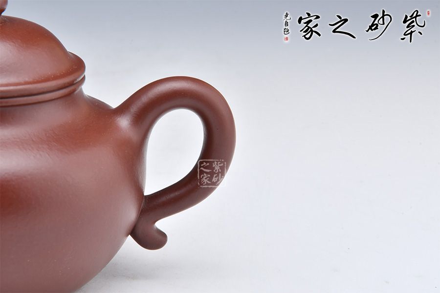 蓮子壺為紫砂圓器中的經(jīng)典器型之一,整器造型似一顆蓮子,壺身圓潤飽滿,壺肩圓滑自然,蓋上的寶珠鈕與壺身之形相呼應(yīng),氣韻通貫。彎流翹首上揚,出水爽利,耳把端莊秀美,把握舒適。簡潔而有力的線條,勾勒出整壺渾樸雅致的氣質(zhì),與蓮之高潔內(nèi)斂的品格相得益彰,賞用皆宜,值得品茗。