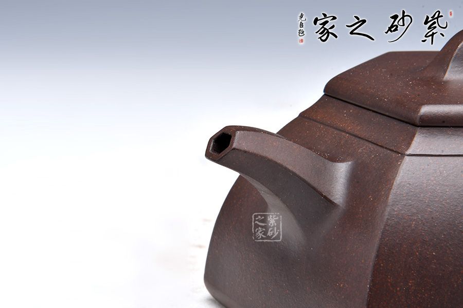 此壺棱角分明,壺體質樸,展現出淳樸率真,古雅大氣之美。彎流壺嘴,出水流暢。壺把線條流暢,把握舒適,可以說兼具實用和觀賞于一體。