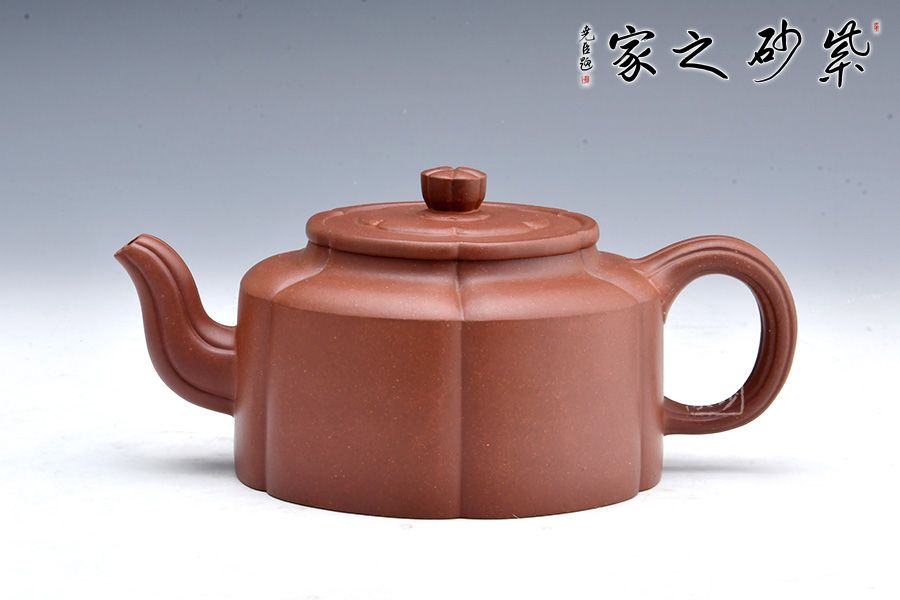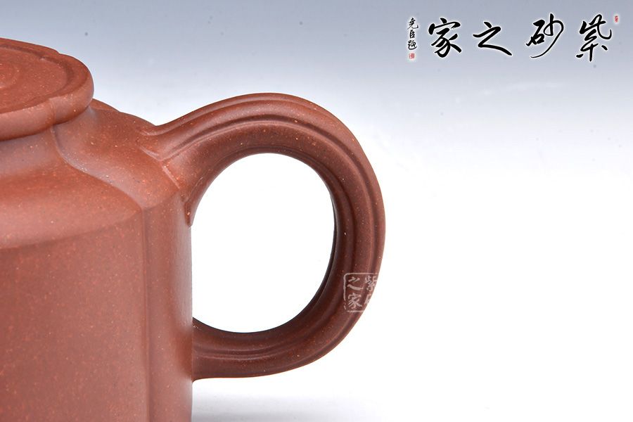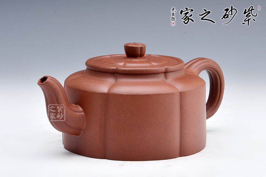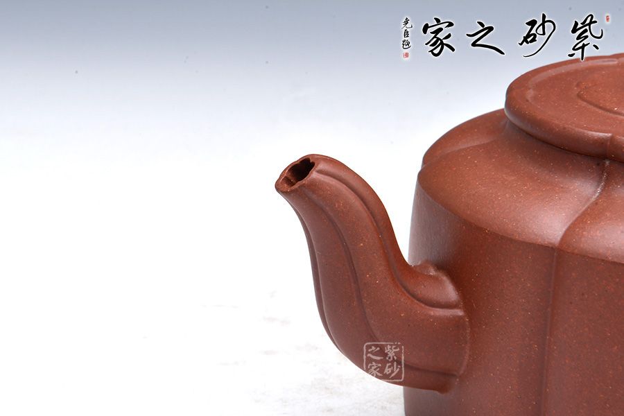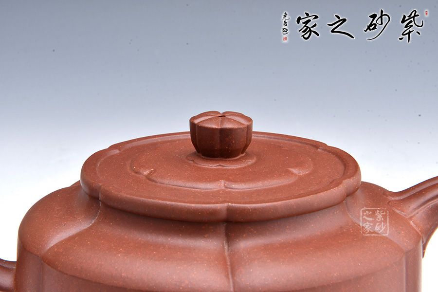 由蓋鈕到壺身,均分為六瓣梅花式,筋紋工整而勻稱,轉折線角清晰明確,氣韻貫通,流、把上的陰線流利明快,形成橫向銜接,與壺身的直向性相對應,寓變化之妙于其中。三彎流,圓潤把手,彎曲成方,與圓桶壺身相接自然。壺蓋修飾為六瓣梅花形,蓋上陰陽線條修飾,由上俯視,蓋的似蕊,蓋面蓋圈、壺肩皆為盛放的梅花朵朵,讓人感嘆通壺制作的工精藝謹。