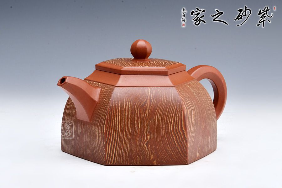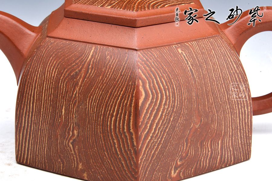 紫砂絞泥是采用兩種或兩種以上不同顏色的紫砂泥,經人工揉合、按壓、層疊、鑲嵌等多種手法絞和而成,再通過拍打泥片,并按要求切割泥片、鑲接泥片, 直至打 好身筒,這樣便在壺身上形成不規則卻十分自然和諧的紋飾圖案,如天際流云、似雨后彩虹;如湖光山色、似大漠原野等等,這些雖在小小的壺面上呈現出虛虛實實的圖象,卻能以小見大地營造出亦真亦幻、自然天成的意境,這正是紫砂絞泥具有的裝飾性。