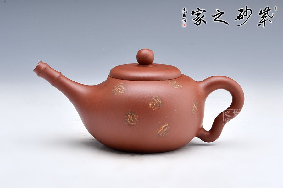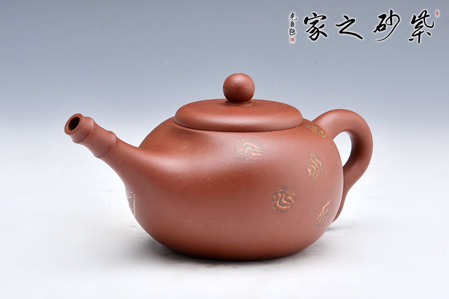 特點:塊狀中有青綠色的"雞眼"、"貓眼"、色呈偏紫泛青,細而純正, 十分稀少.燒成的壺呈現 紅豬肝色,燒成顏色具體要看礦料的成分構成和燒成溫度。