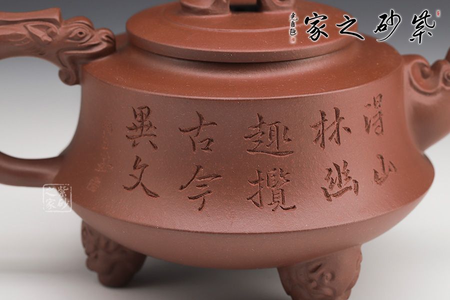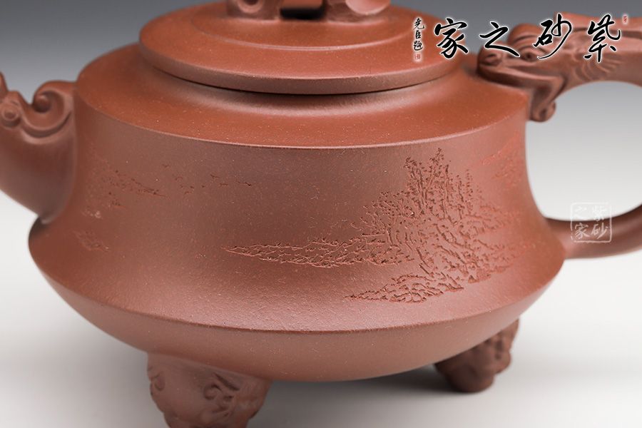 壺腹飽滿,橋鈕、平蓋更顯古雅韻味。龍形壺鈕,大氣磅礴!龍首為嘴,出水爽利,龍尾為把,端握舒適。姿態(tài)灑脫,氣勢雄渾。精選原礦底槽青泥料制成,質地特純,泥質細膩、成色穩(wěn)重。