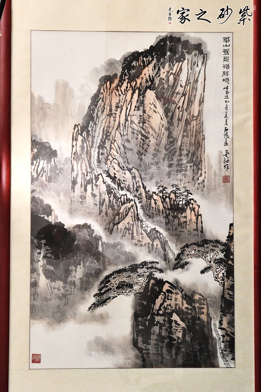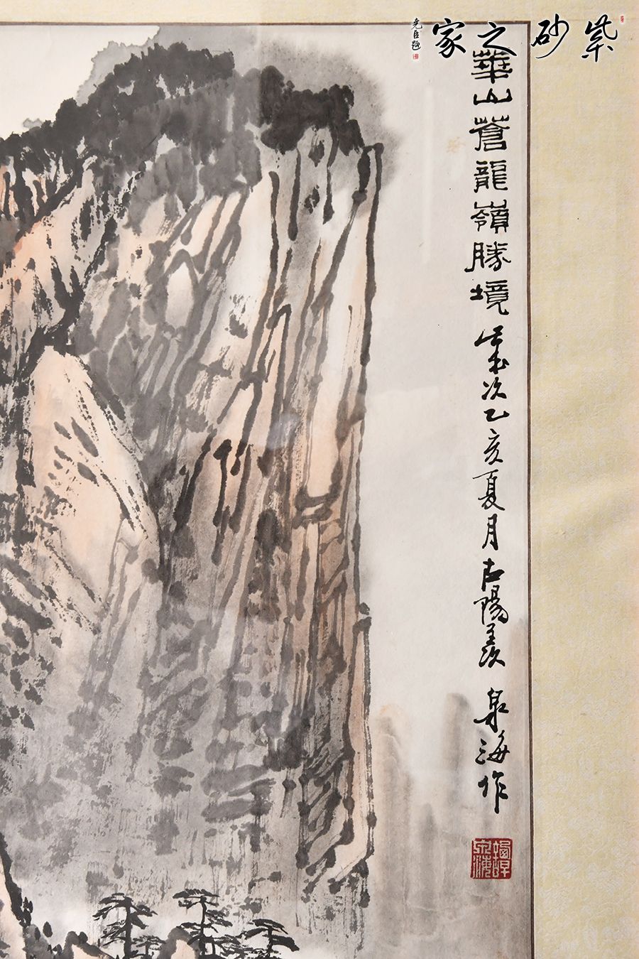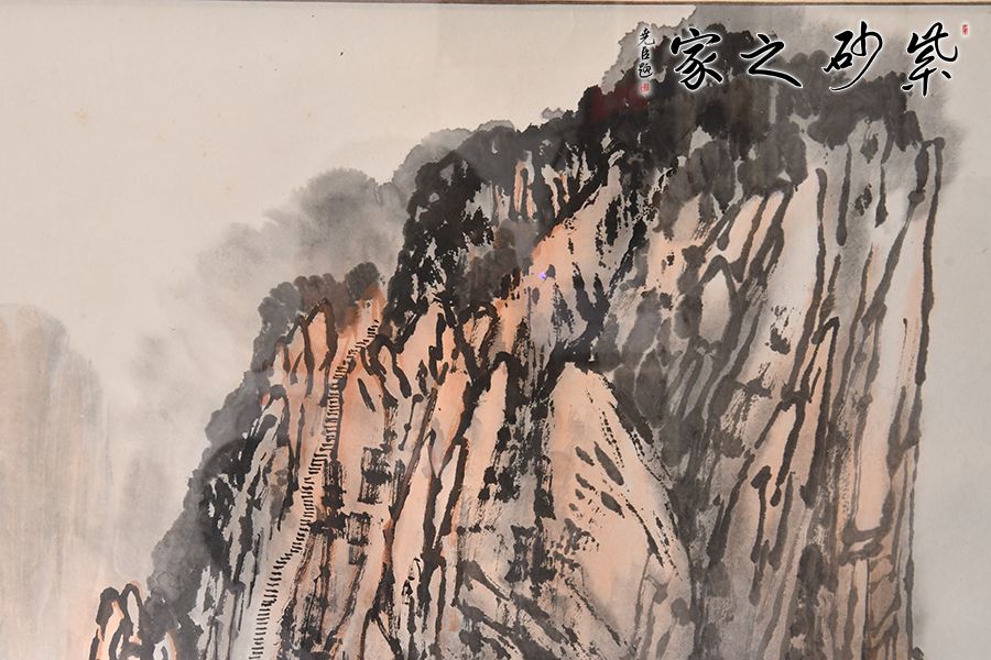 譚泉海,中國(guó)工藝美術(shù)大師,也是三屆人大代表,其書法功力獨(dú)具風(fēng)格自成一派。此畫將譚國(guó)大的書法更加直觀的變現(xiàn)出來(lái),取景華山的蒼龍嶺,畫中的山峰險(xiǎn)峻挺拔,意境十足。喜歡紫砂以及書法的藏友千萬(wàn)不能錯(cuò)過(guò)這幅極其難得的作品。