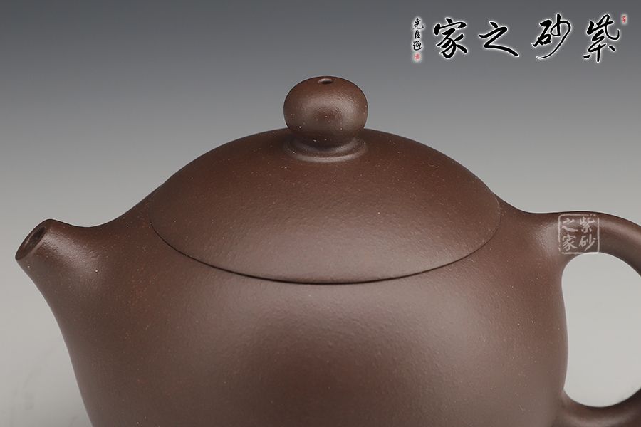 西施壺是紫砂經(jīng)典款型中的一種,壺體線條舒緩柔美,簡練俊美,此壺通身豐潤飽滿,有如雍容華貴之意,直流型壺嘴更顯得嬌小可愛,為此壺增添了幾份韻味,倒耳型壺把的設計亦是此壺的特點之一,似有與壺嘴遙遙相望之意,而截蓋的設計使得整個壺從遠處看如同一完美整體。