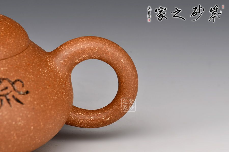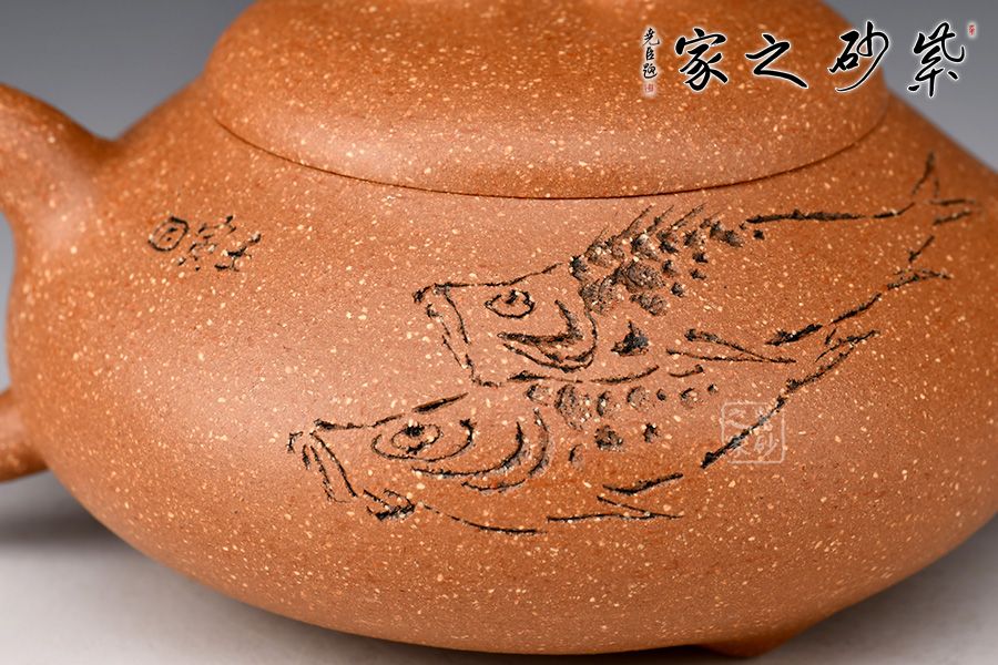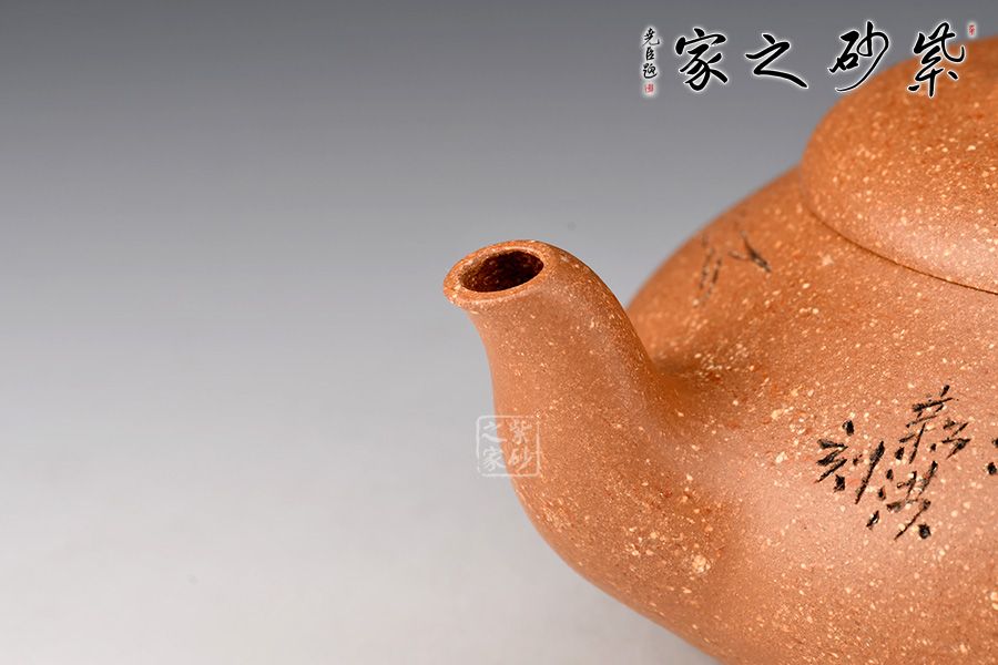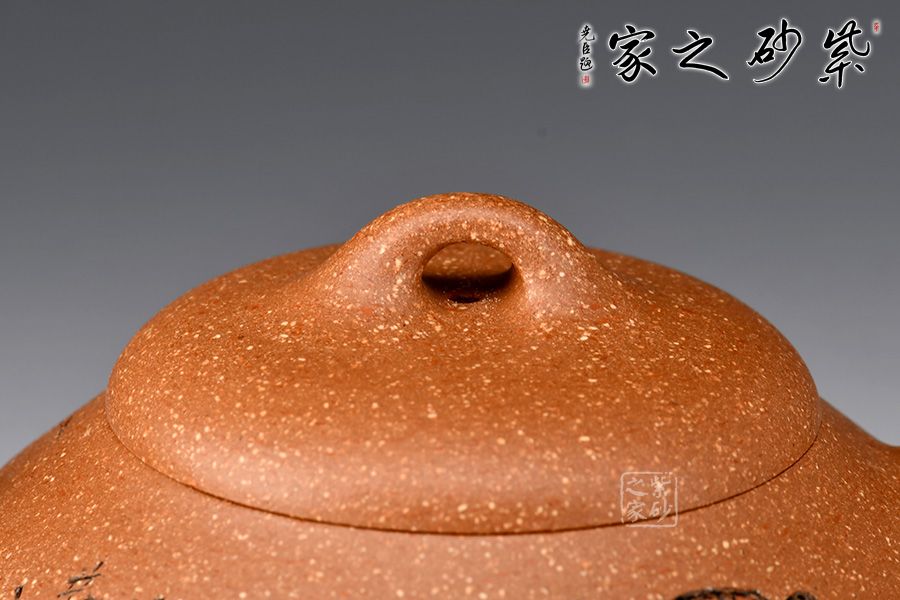 泥性:原礦因含緞泥、紅泥、紫泥等諸多共生礦,成陶之后,于深沉之“橙紅色”底上,滿佈五彩斑斕的粗細、深淺之紅、黃星斑點。
