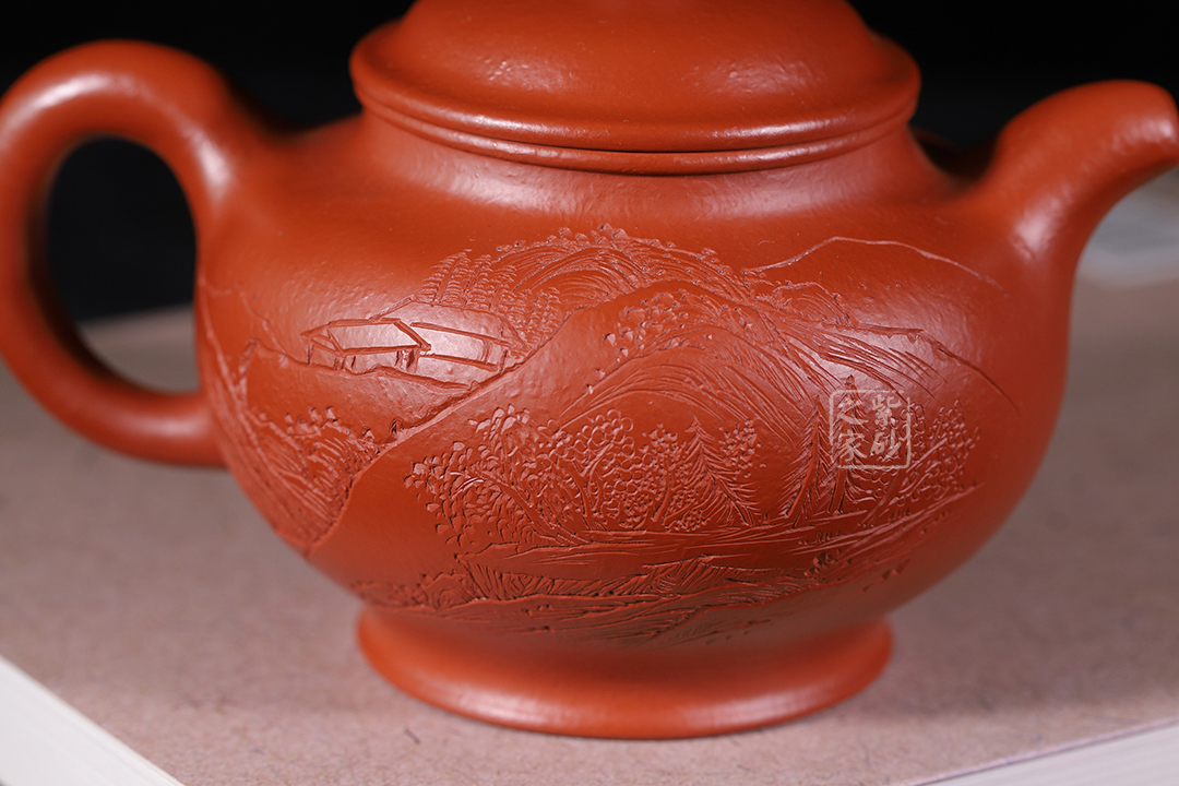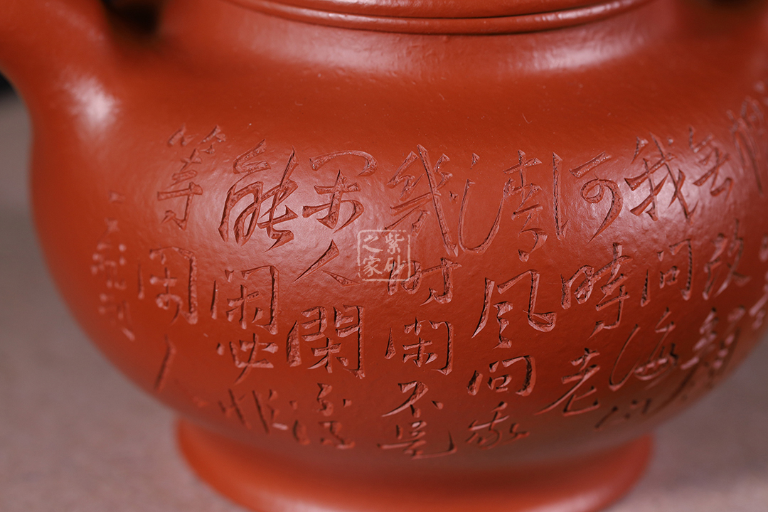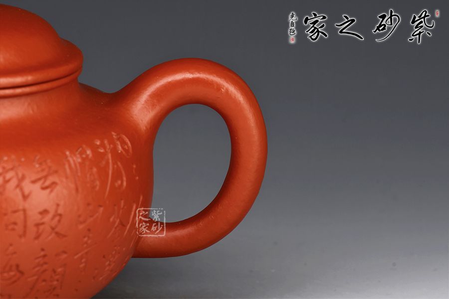 特點:質(zhì)感綿密、緊實細緻,持之扎實沉重、紅潤豔麗,泥中極品,無以倫比;泥胚含少許原礦顆粒,沖淋熱水后色變極大,呈紅中帶紫,養(yǎng)壺易現(xiàn)“包漿”之美。