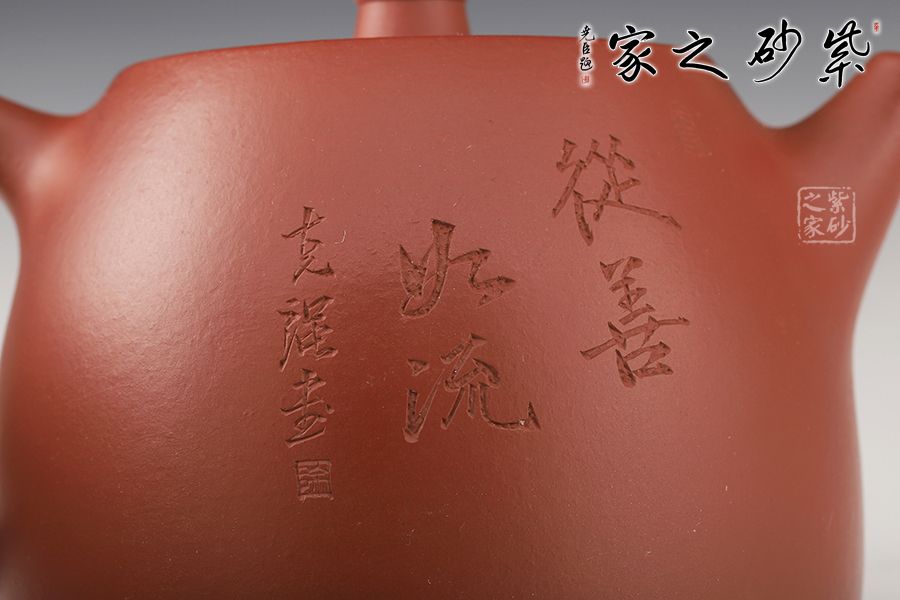 漢鐸,徐克強(qiáng)老師所作。擅長(zhǎng)做各種傳統(tǒng)的手工壺,能把紫砂藝術(shù)和陶刻藝術(shù)融于一體,是紫砂界一位頗具潛力的巧匠。
