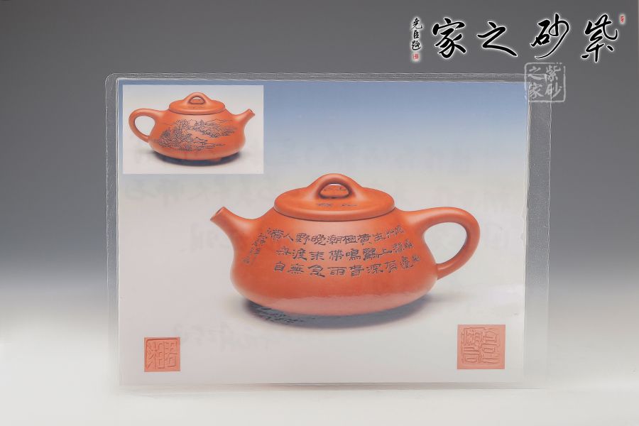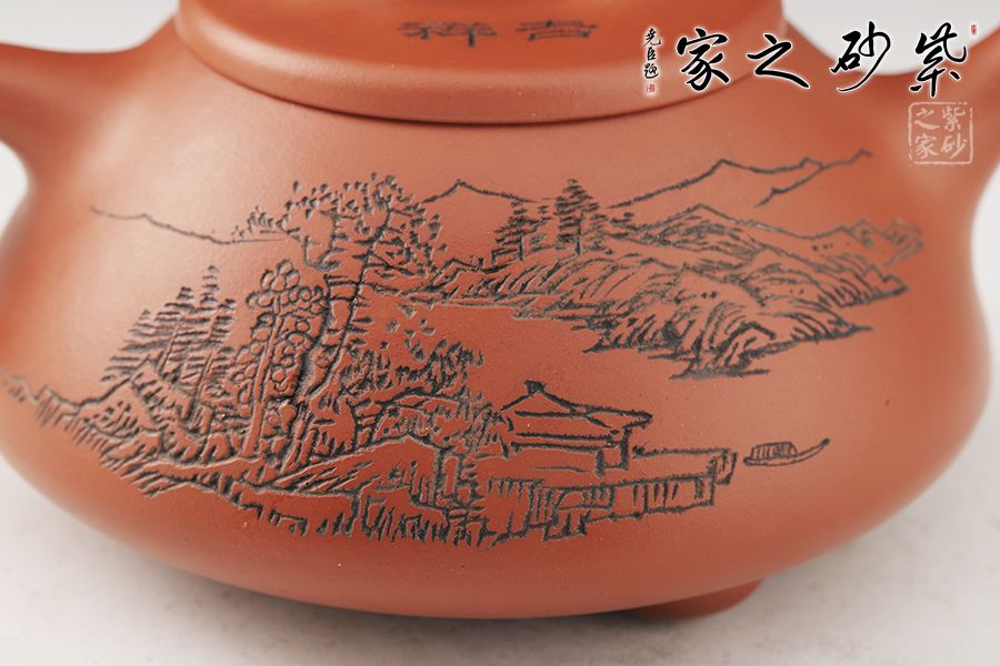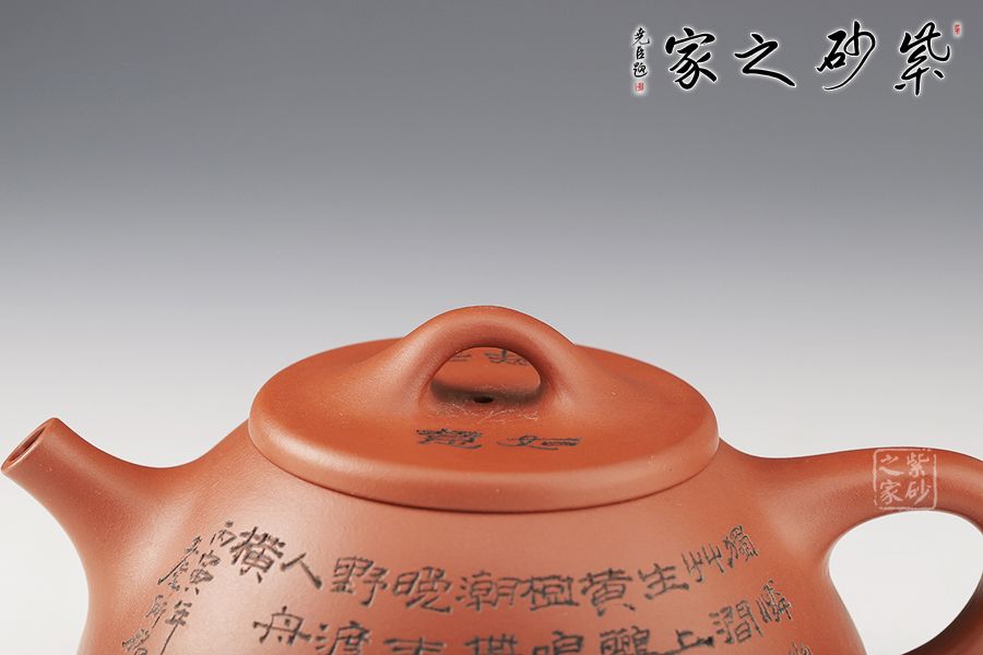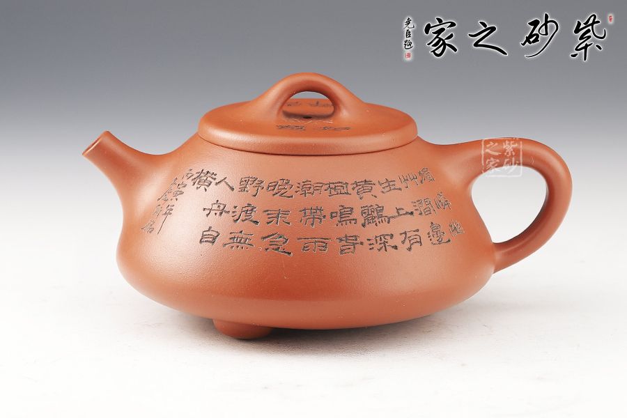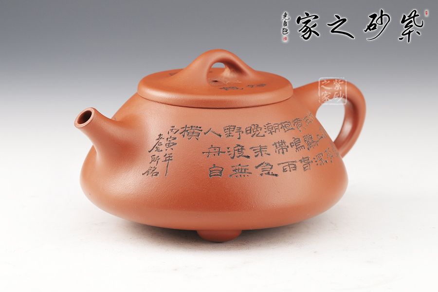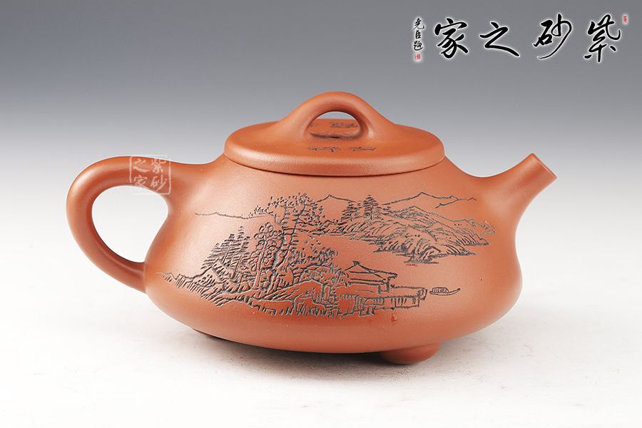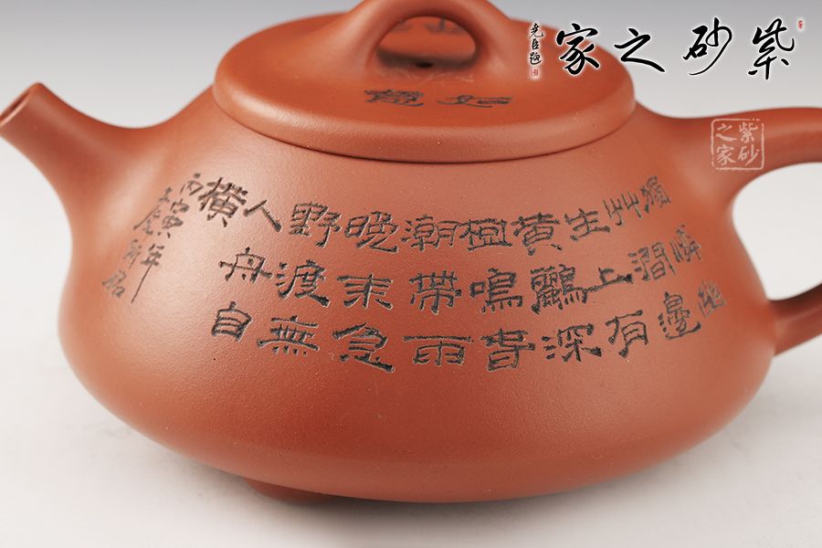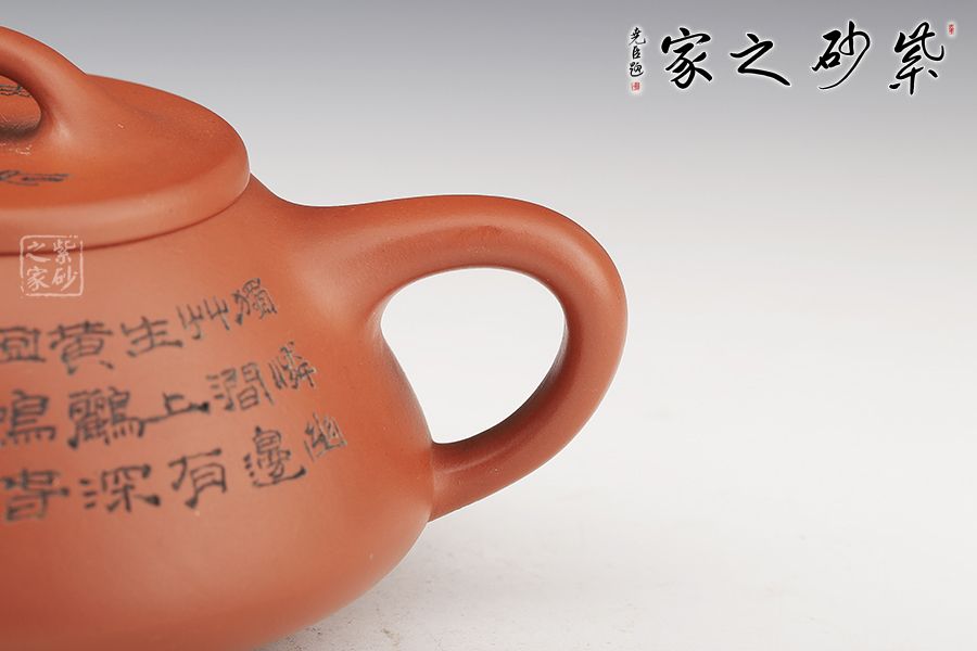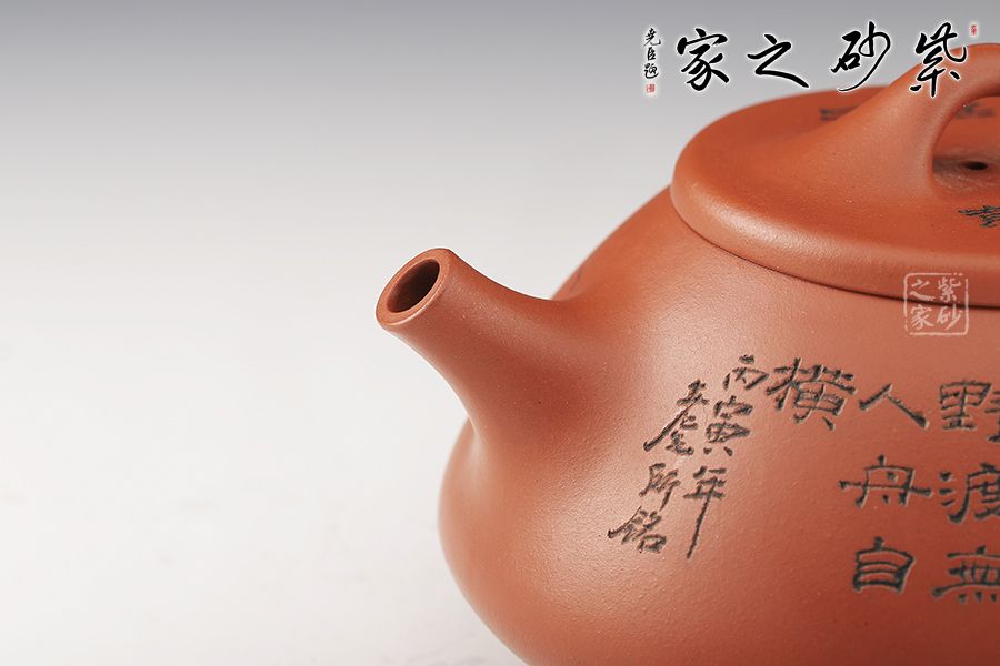 此壺經(jīng)典的石瓢器型 壺身滿身刻繪 刻繪景色字畫(huà) 非常有深度 瀟灑自然 壺嘴壺把壺蓋自稱一體 非常巧妙 難得的收藏佳品