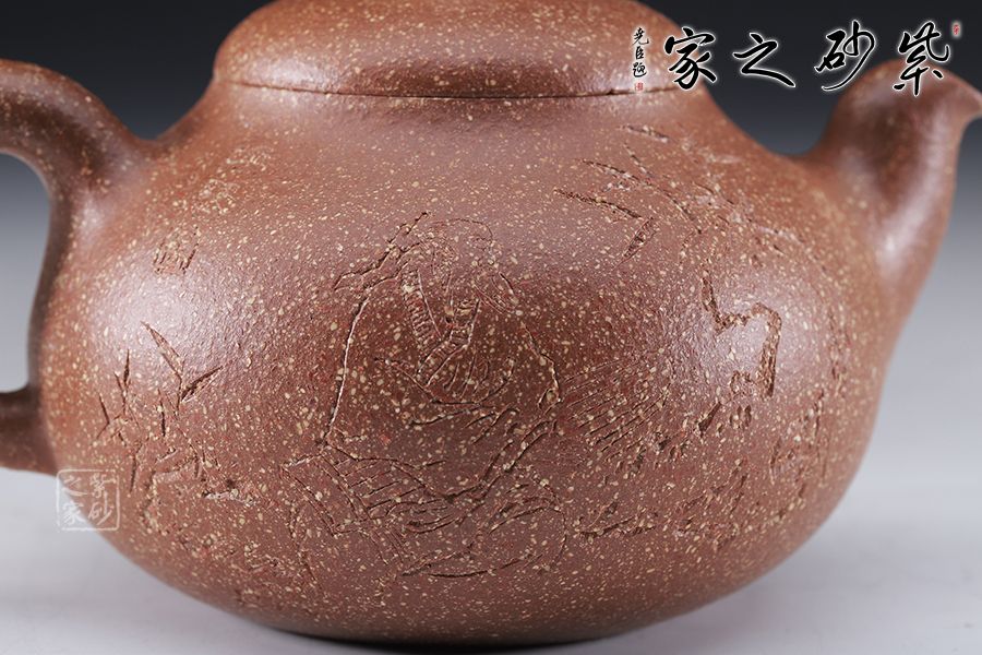 整壺猶如一個飽滿的茄瓜,壺身飽滿,壺嘴壺把相呼應(yīng)。壺嘴略微向下拉伸,顯出彎勢。圈把內(nèi)斂,不失質(zhì)樸之美。傳統(tǒng)器型,造型簡練優(yōu)美,值得收藏!