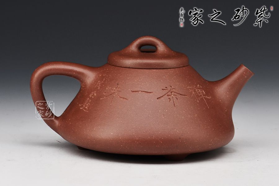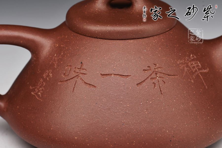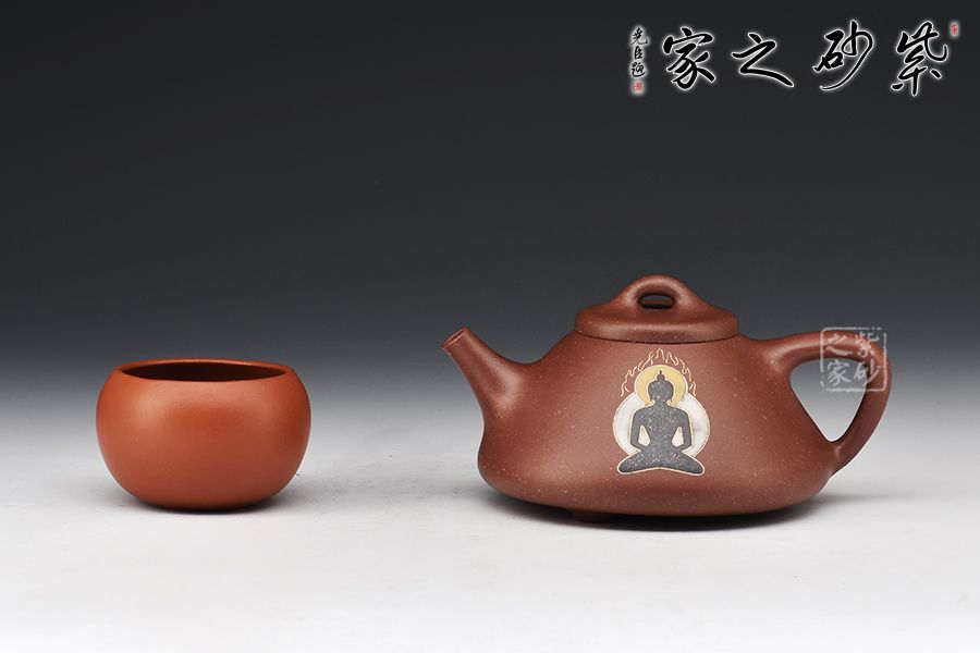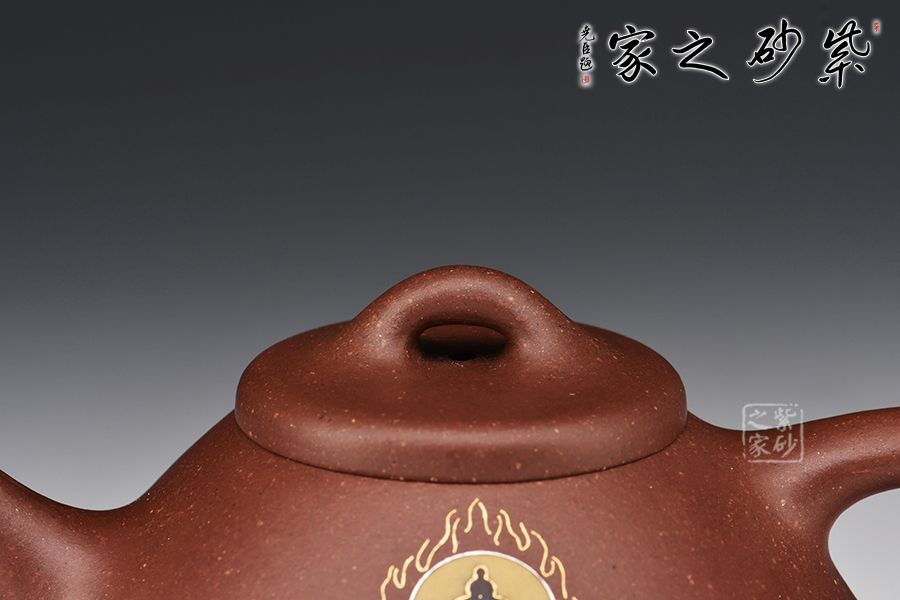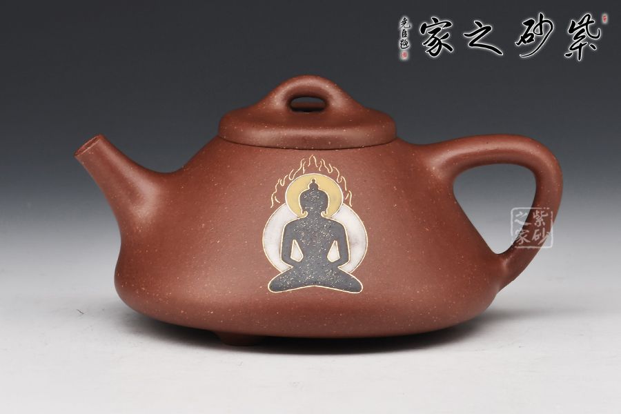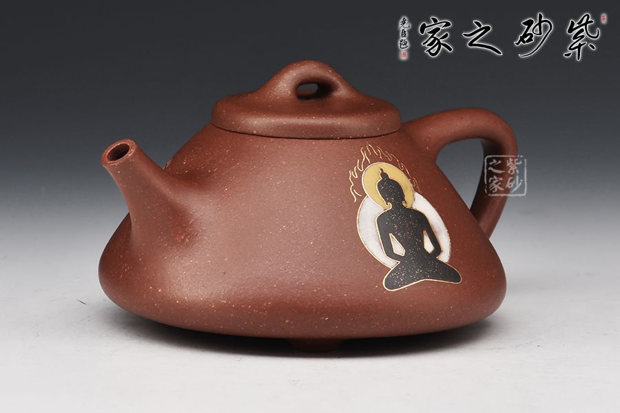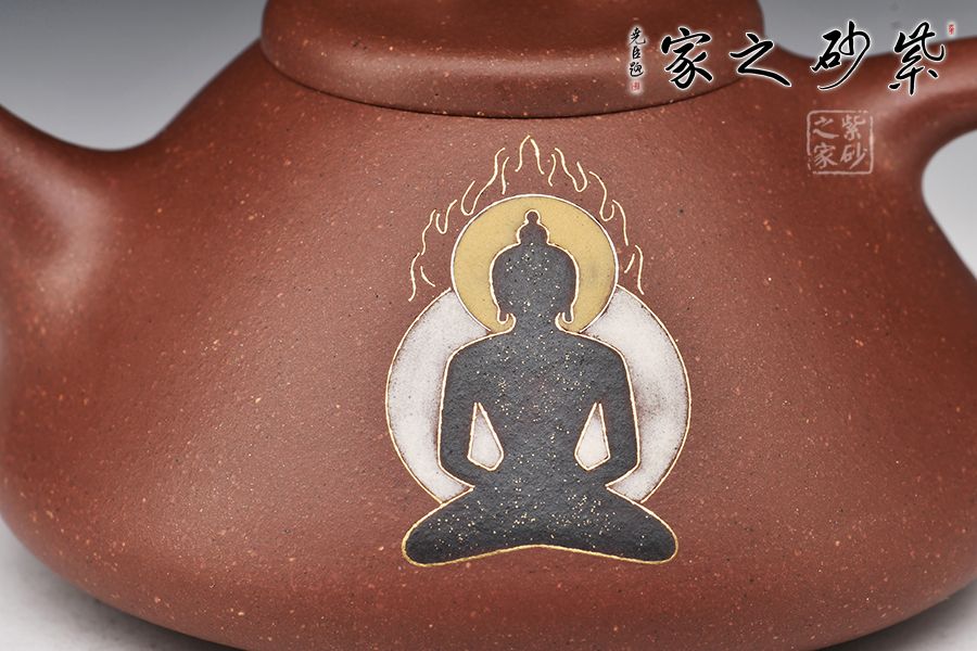 “石瓢”是紫砂傳統(tǒng)經(jīng)典款式,其型態(tài)雅致,舒展挺拔,端莊穩(wěn)重,剛中有勁,敦實(shí)調(diào)和,是最受忽悠們歡迎的器型之一。整壺比例勻稱,精簡(jiǎn)大氣。無(wú)論是橋鈕、壓蓋,還是直流、三角把,抑或是人字形壺身,布局精巧,恰到好處。腹部裝飾佛像,與刻繪禪茶一味相呼應(yīng),惹人喜愛,喜歡的壺友不要錯(cuò)過(guò)!