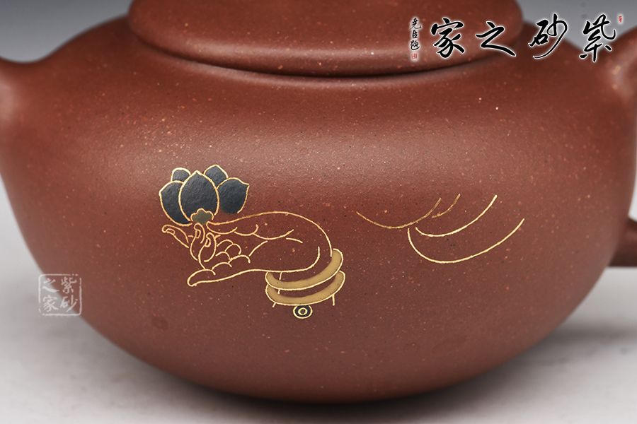“即心即佛”一詞是佛教流傳甚廣的開悟名句,意為眾生的真心就是佛,無須向外覓求。此壺充滿禪意,在汲取佛家文化精髓的基礎(chǔ)上進(jìn)行再創(chuàng)作,壺身蓮花采用“胡氏金銀錯”技藝,工藝精湛,美輪美奐,此壺值得把玩!