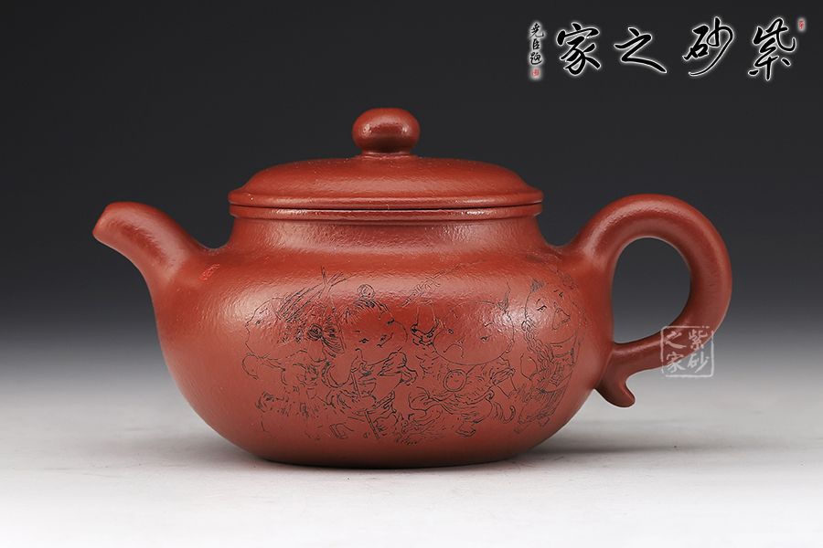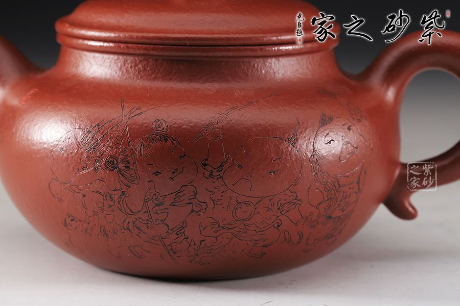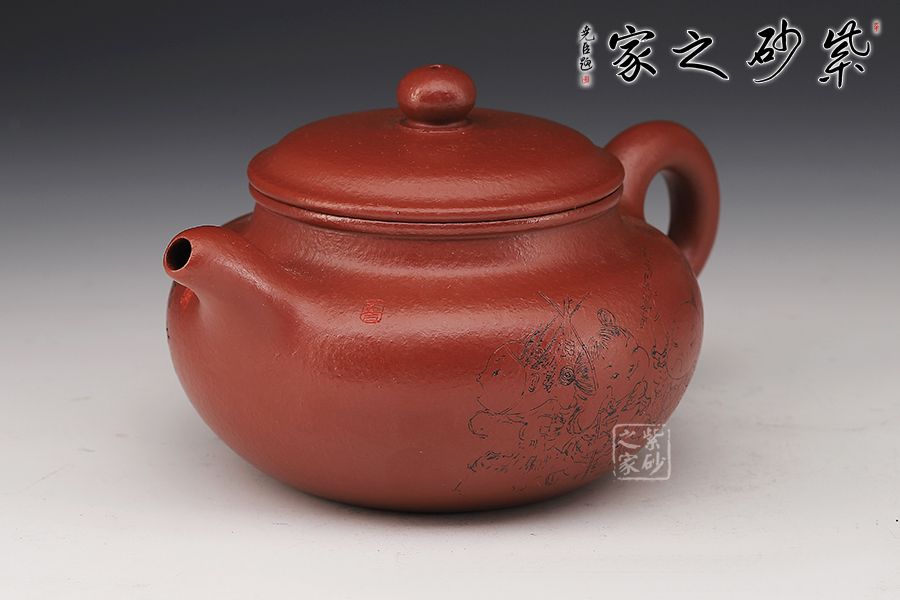 特點(diǎn):質(zhì)感綿密、緊實(shí)細(xì)緻,持之扎實(shí)沉重、紅潤(rùn)豔麗,泥中極品,無(wú)以倫比;泥胚含少許原礦顆粒,沖淋熱水后色變極大,呈紅中帶紫,養(yǎng)壺易現(xiàn)“包漿”之美。