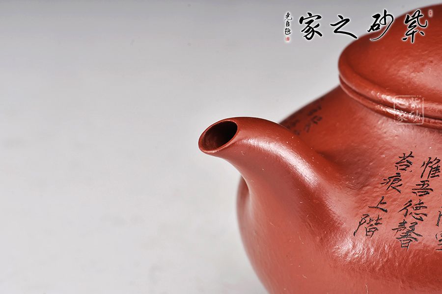 特點:質感綿密、緊實細緻,持之扎實沉重、紅潤豔麗,泥中極品,無以倫比;泥胚含少許原礦顆粒,沖淋熱水后色變極大,呈紅中帶紫,養(yǎng)壺易現(xiàn)“包漿”之美。