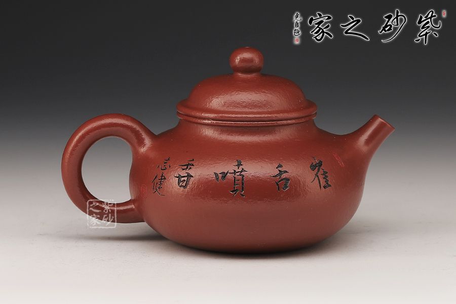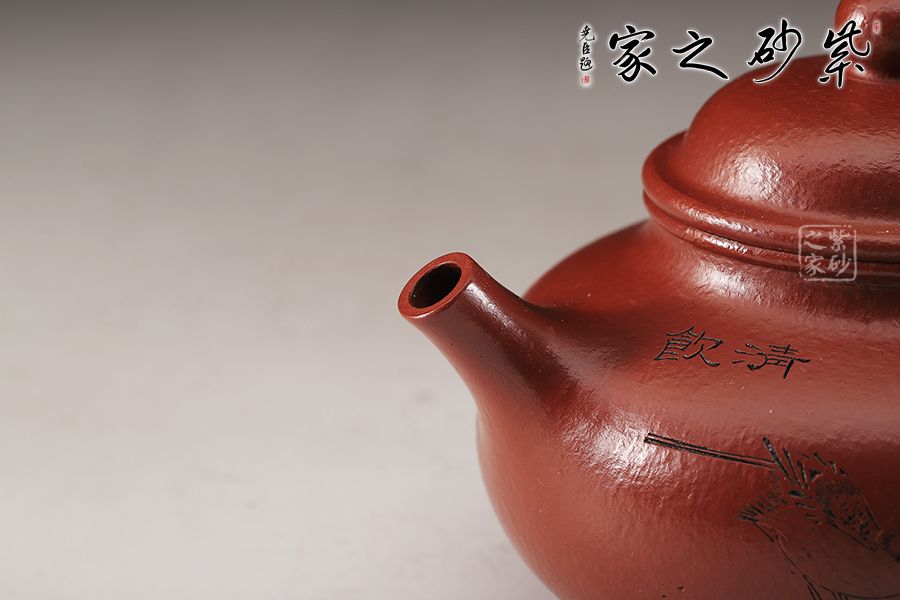 特點:質(zhì)感綿密、緊實細緻,持之扎實沉重、紅潤豔麗,泥中極品,無以倫比;泥胚含少許原礦顆粒,沖淋熱水后色變極大,呈紅中帶紫,養(yǎng)壺易現(xiàn)“包漿”之美。