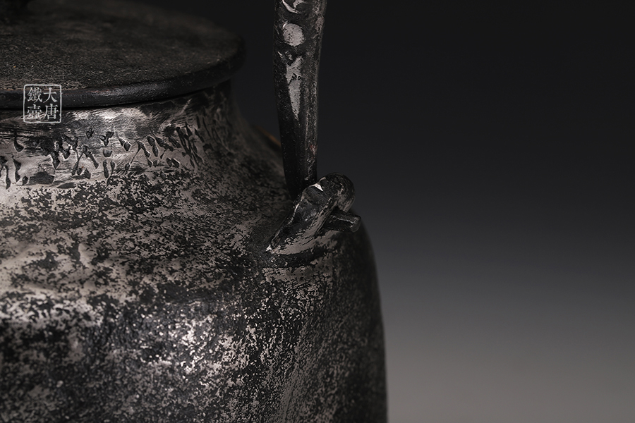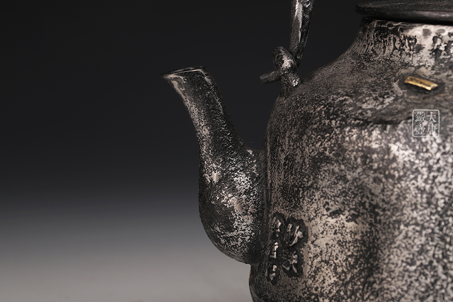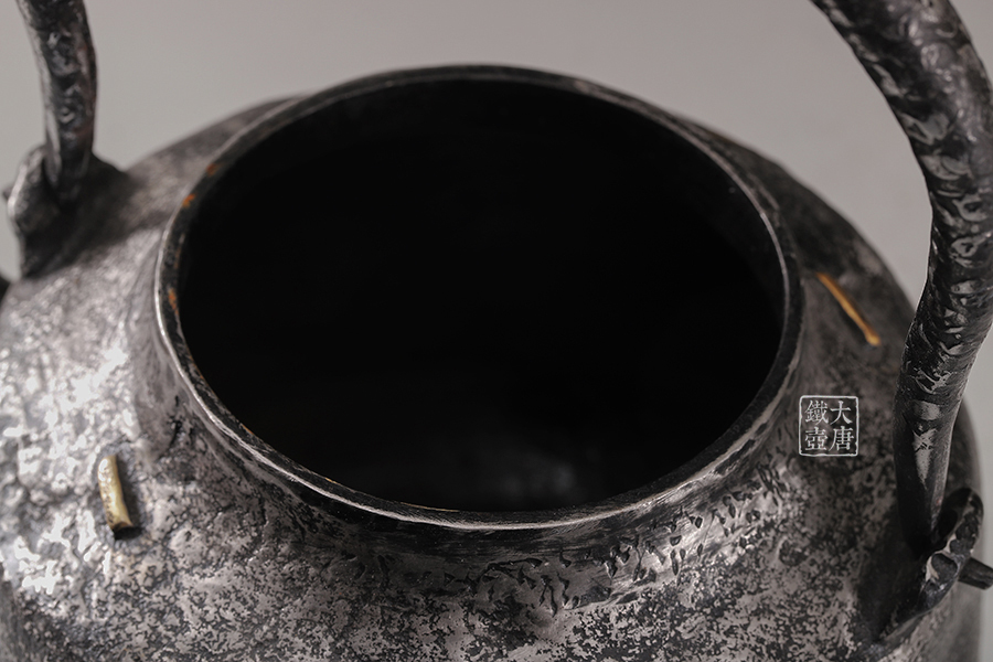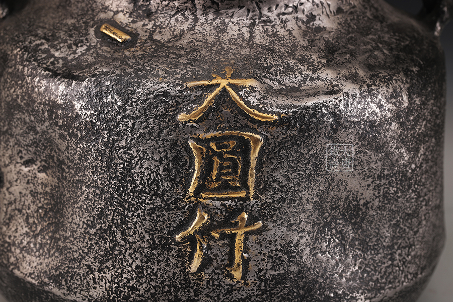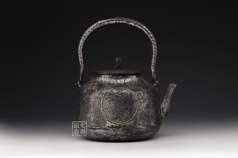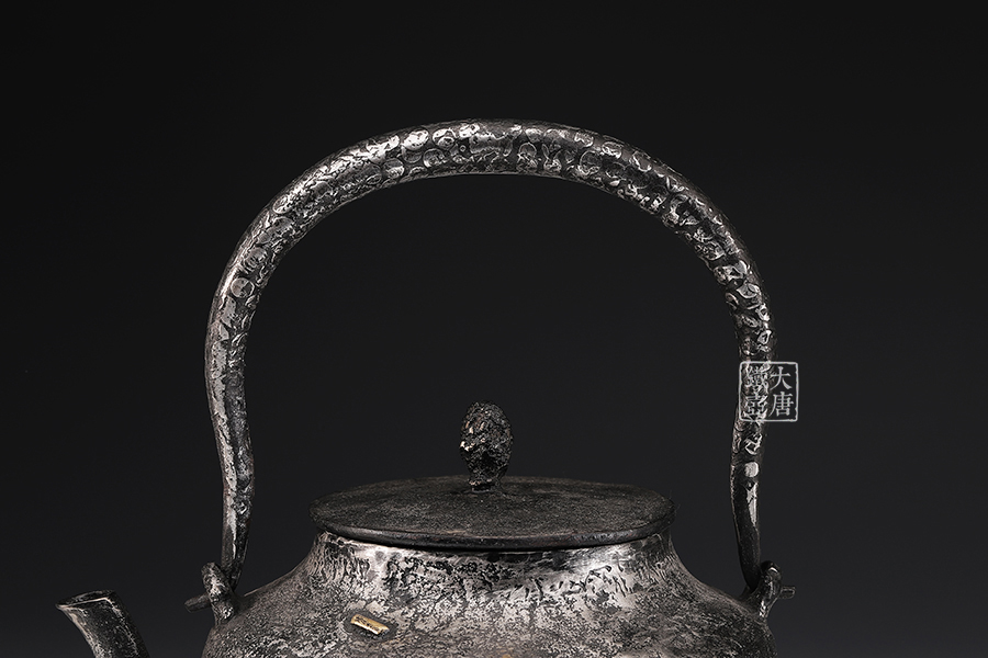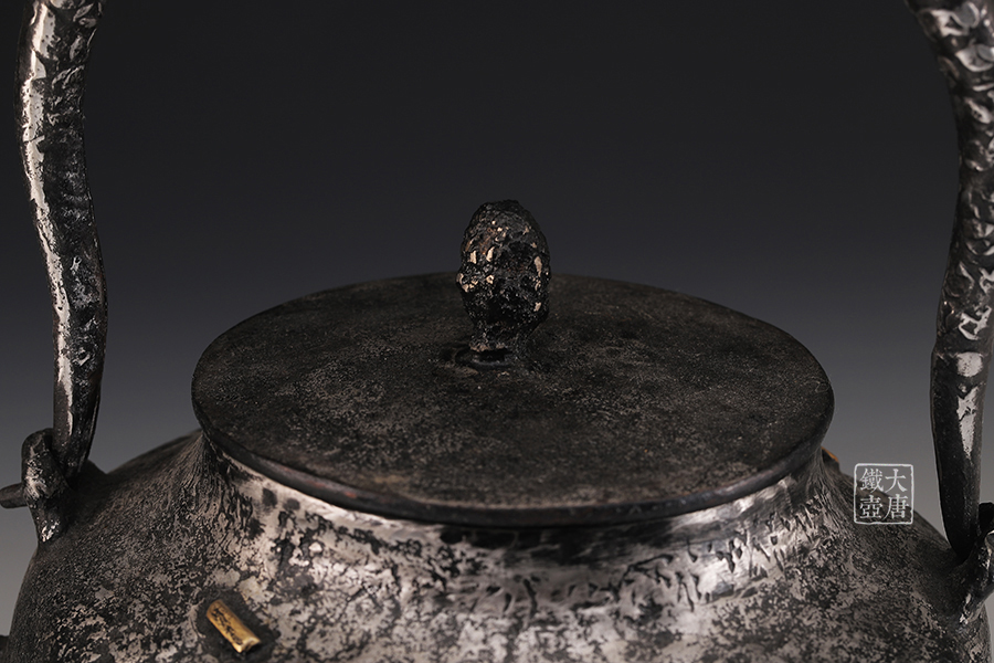荒井工房的鐵瓶除了在鑄造工藝上有嚴(yán)格的規(guī)范和體系,在鐵瓶裝飾技術(shù)上也頗有建樹。除了傳統(tǒng)的印刻技術(shù)外,荒井工房還掌握了非常出色的金銀鑲嵌技藝,尤其以大片的鏨刻銀片最為出眾,這在山形當(dāng)?shù)靥每谥歇殬湟粠谩?/p>