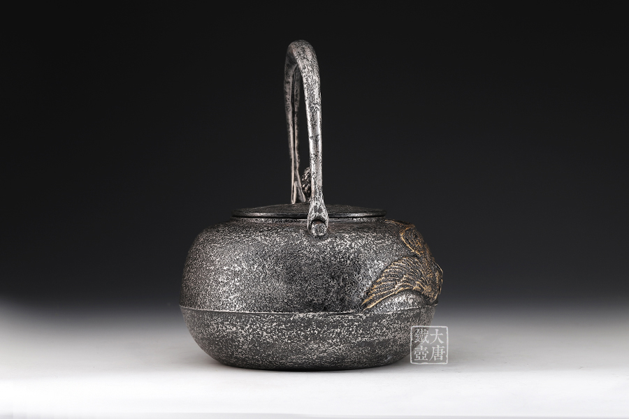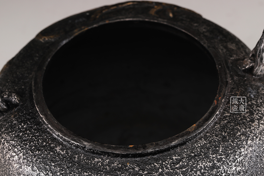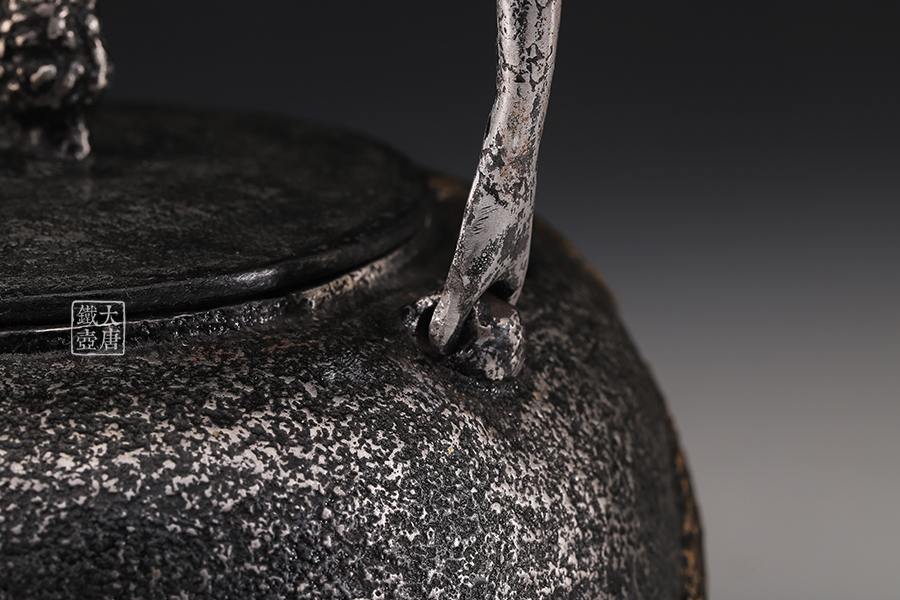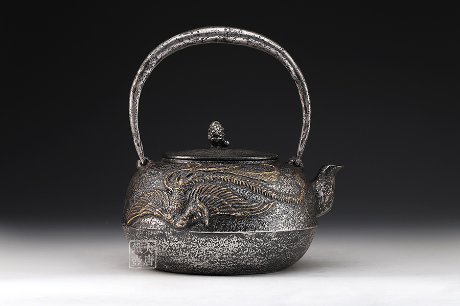 荒井工房的鐵瓶除了在鑄造工藝上有嚴(yán)格的規(guī)范和體系,在鐵瓶裝飾技術(shù)上也頗有建樹。除了傳統(tǒng)的印刻技術(shù)外,荒井工房還掌握了非常出色的金銀鑲嵌技藝,尤其以大片的鏨刻銀片最為出眾,這在山形當(dāng)?shù)靥每谥歇?dú)樹一幟。