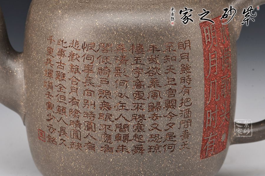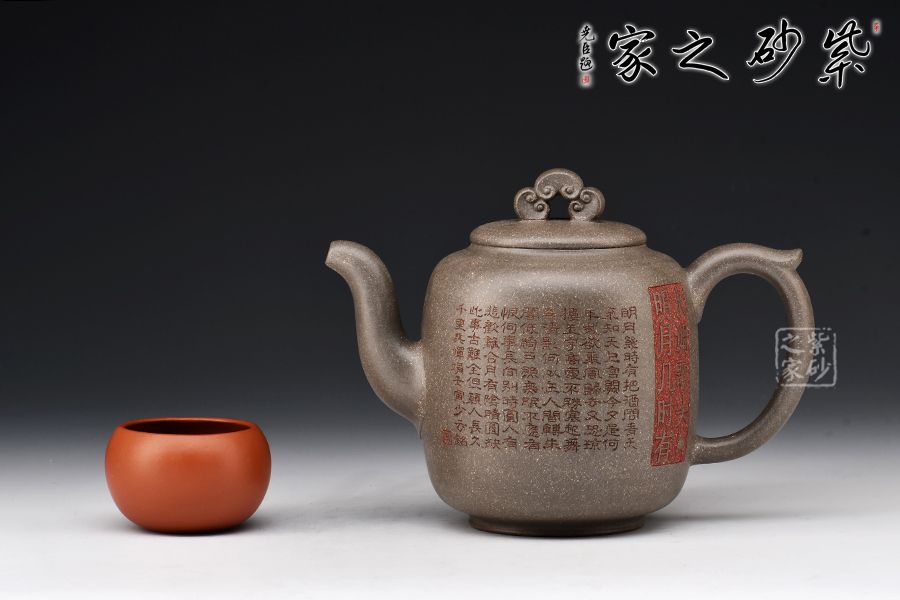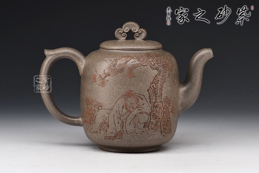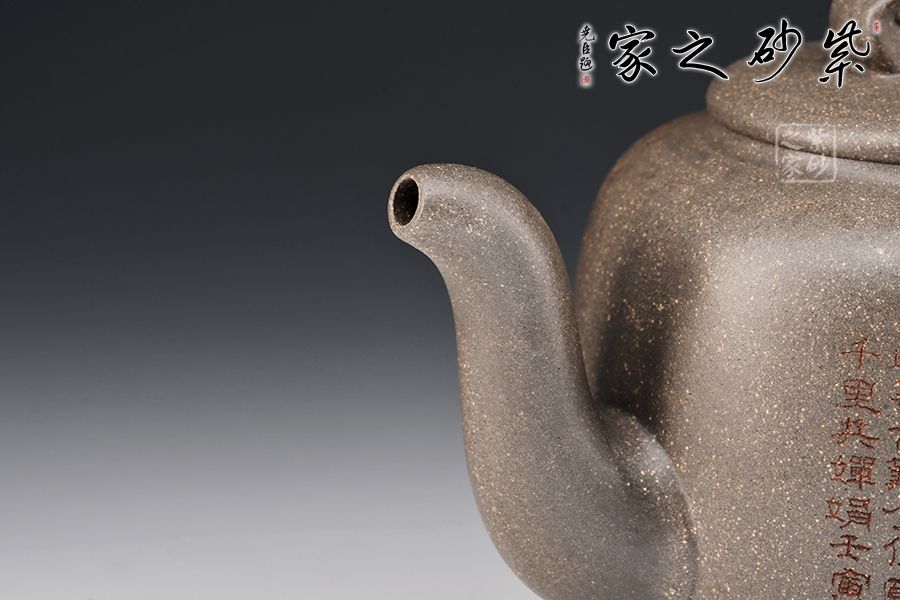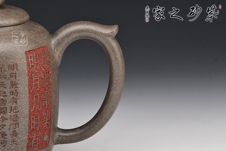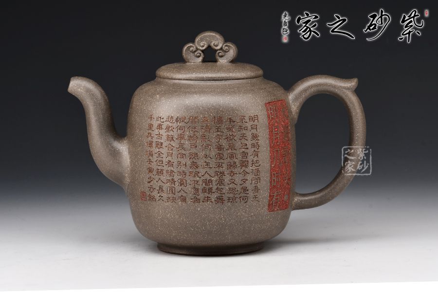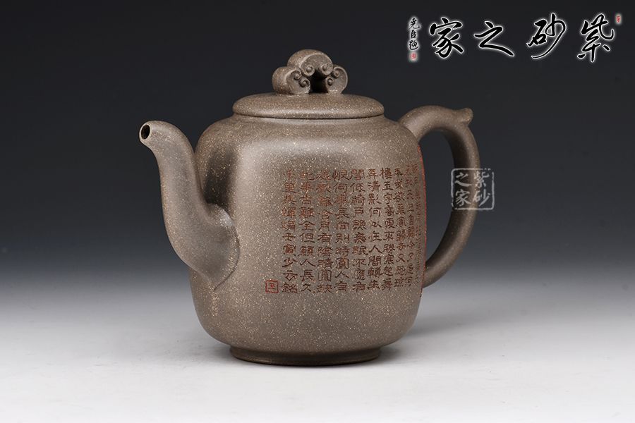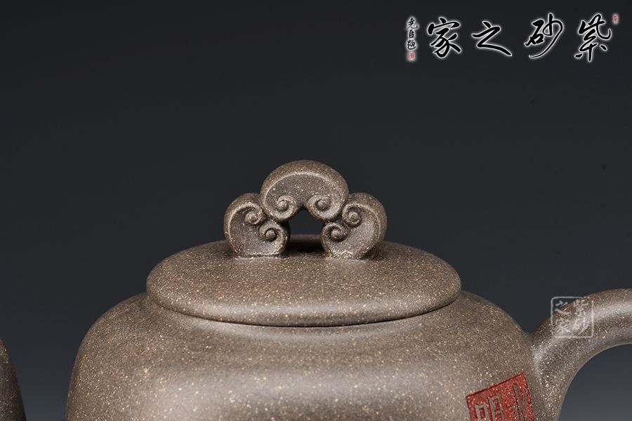 壺身呈圓柱狀,線條流暢。嵌蓋設(shè)計(jì),嚴(yán)絲合縫,壺鈕上一朵完整飽滿的祥云,寓意如意吉祥,并點(diǎn)名壺意。三彎嘴出水爽利,飛把拿捏舒適。壺身裝飾圈底,挺拔壺身。