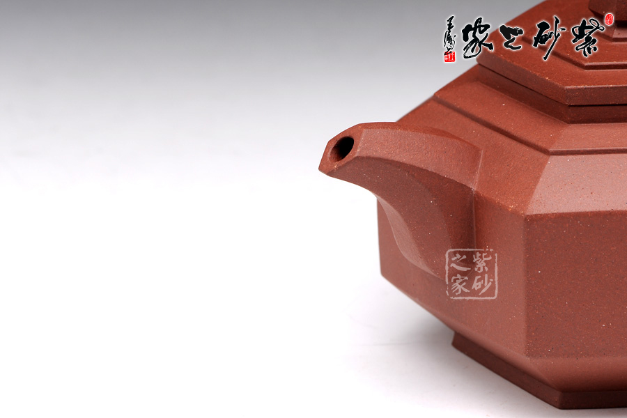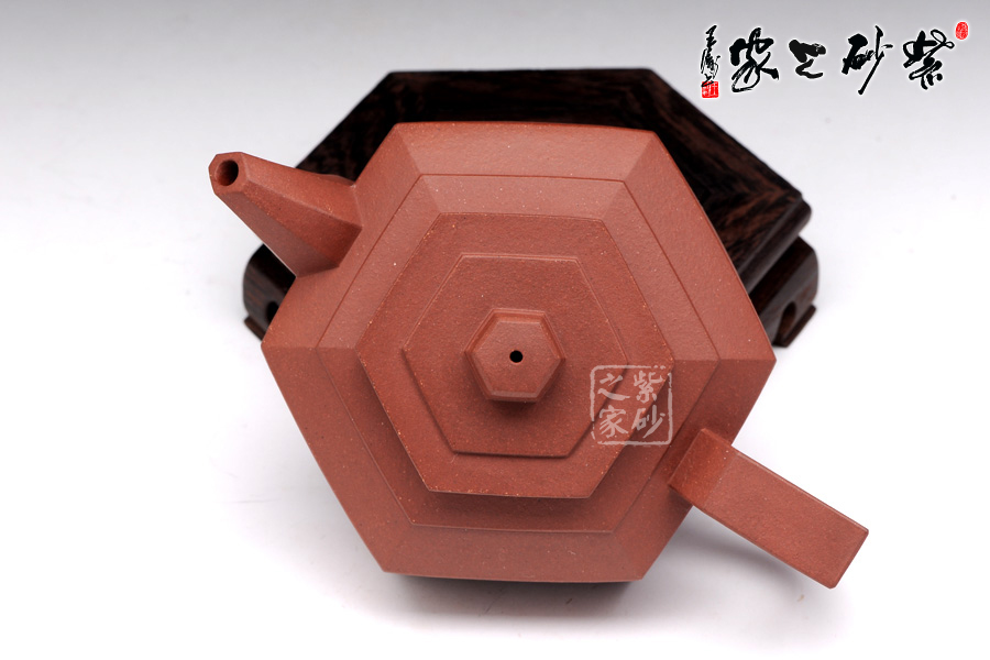 雪華壺意為瑞雪兆豐年之意,寓意美好,此款六方雪華壺在經(jīng)典雪華壺的基礎(chǔ)上略作變通,將壺身與壺底的過(guò)渡變得棱角分明,使雪華的壺身變?yōu)榇怪钡牧妫譃樯现邢氯糠郑簧w面重疊六方形,六方蓋鈕與壺身相似,六方加底,整體造型,折肩以上刻劃較細(xì),俯視可看出六個(gè)方形層層疊加,壺身較為簡(jiǎn)單,可形成對(duì)比;嘴、鈕與把三點(diǎn)一線,嘴型呈六方,又彎曲有度,三彎古拙韻高;把呈四方,轉(zhuǎn)折有力度,端握舒適稱手;把呈四方,轉(zhuǎn)折有力度,端握舒適稱手;整個(gè)壺型輕薄飽滿,做工細(xì)致,方雅而不失靈氣,不禁讓人想起漫天飛舞的輕盈雪華,美麗動(dòng)人。