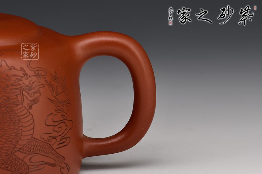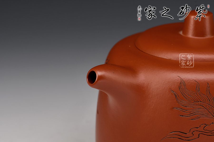 特點:質感綿密、緊實細緻,持之扎實沉重、紅潤豔麗,泥中極品,無以倫比;泥胚含少許原礦顆粒,沖淋熱水后色變極大,呈紅中帶紫,養壺易現“包漿”之美。