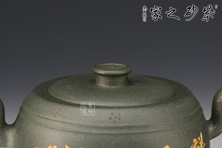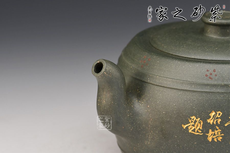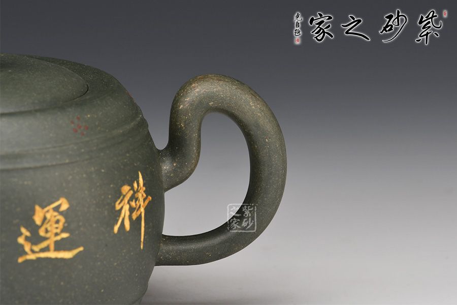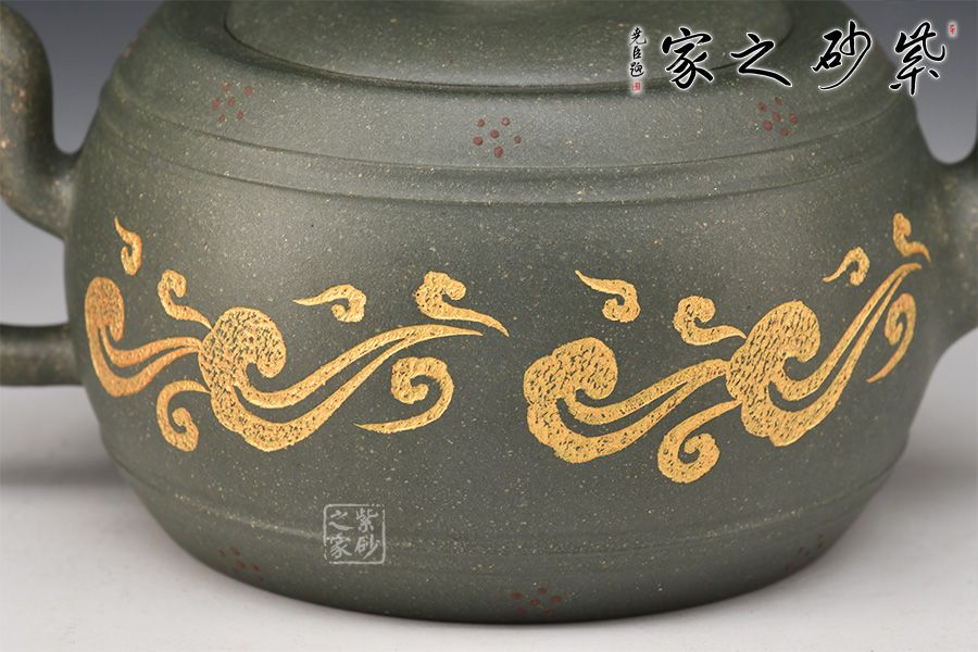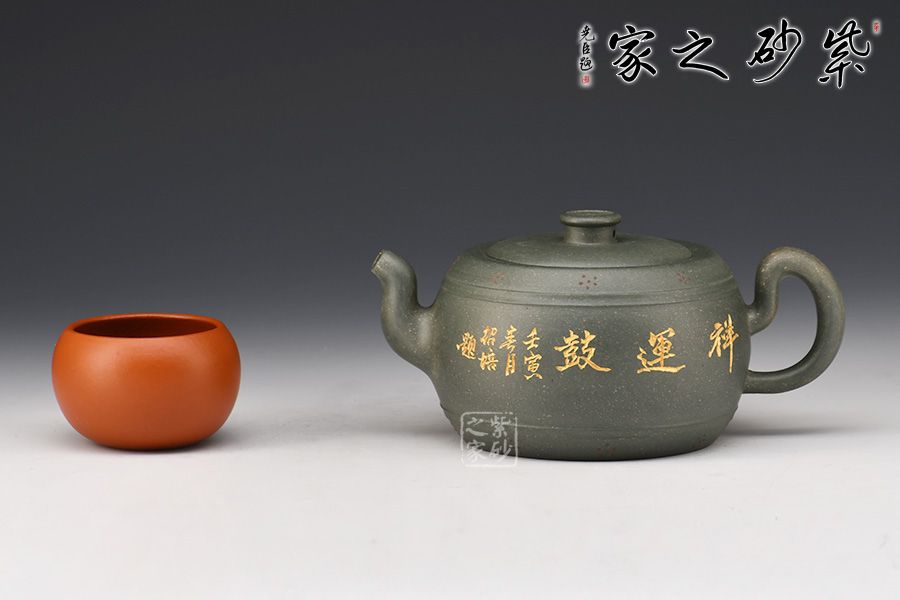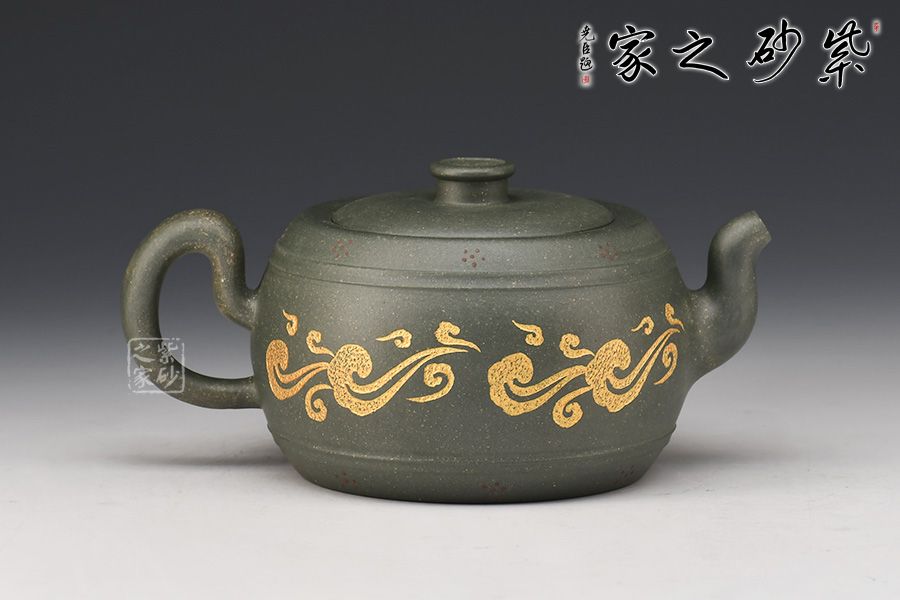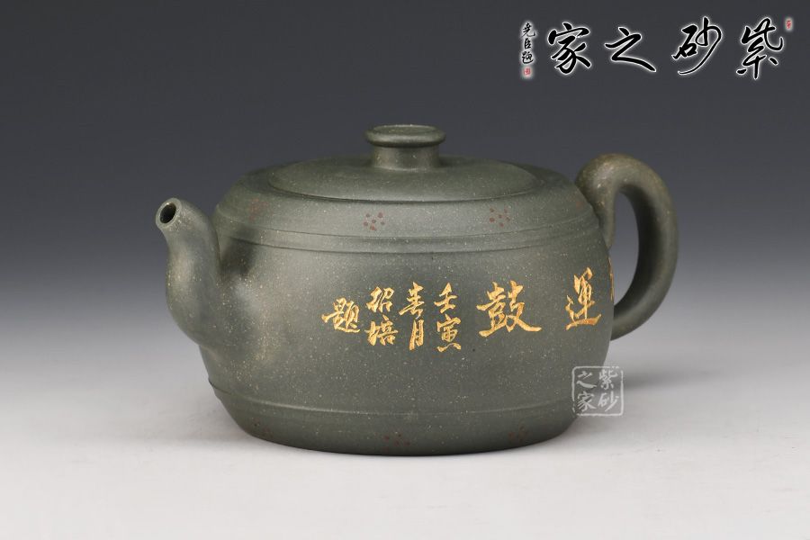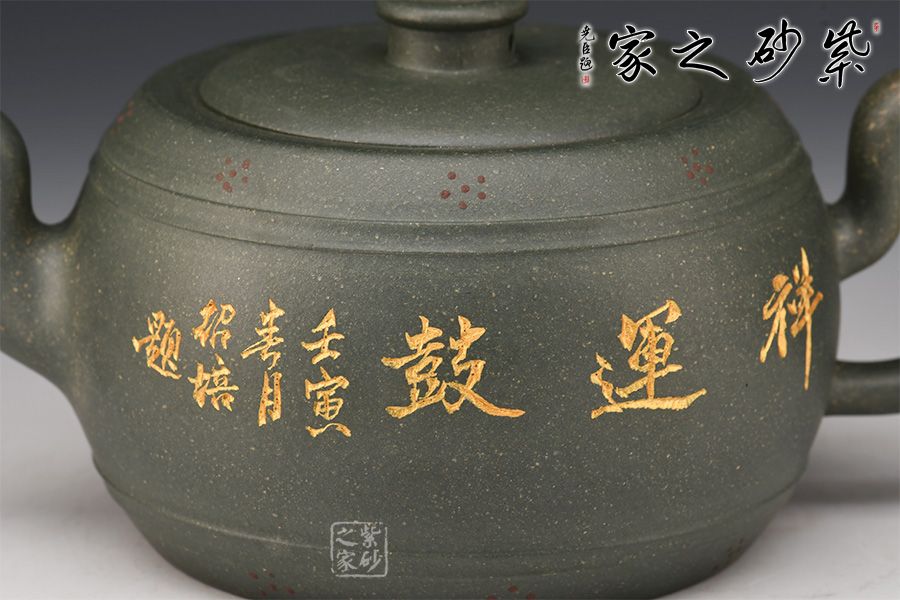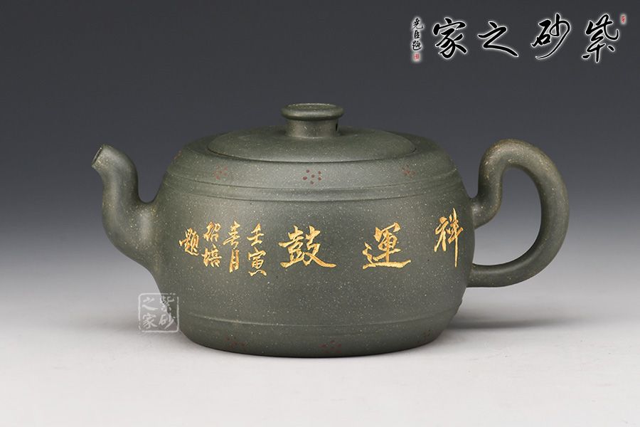 趙竹青,為顧氏紫砂后起之秀,師從中國工藝美術大師長女、正高級工藝美術師顧勤,作品形神兼?zhèn)洹4藟赜深櫨爸弁钅嗔涎┤A綠泥制作而成,壺身由顧紹培大師書題,整壺像是一個鼓,壺把與壺嘴線條凹凸有致,實用且美感十足!