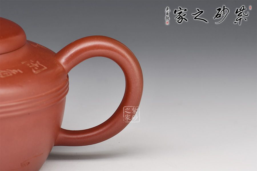 精選原礦紅泥制作而成,壺容量為370cc,壺身圓渾飽滿,線條曲弧流暢,流與把前后呼應(yīng),輕靈舒展,有穩(wěn)實于形外的動感,橋形壺鈕,挺拔壺身。整壺莊重肅穆,且空間虛實分明,得體大方,唯有玉帶環(huán)腰,器型不偏不倚,質(zhì)樸素雅,無過多修飾,端莊秀麗。