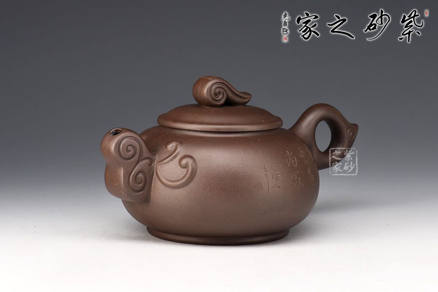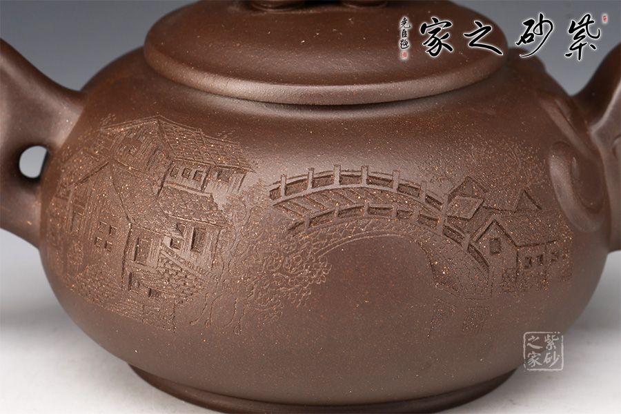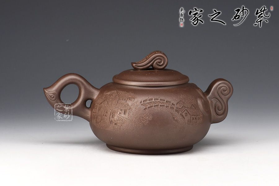 此款祥云如意壺為李惠強老師制作,泥質(zhì)細膩,成色穩(wěn)重。壺嘴、壺把及壺鈕皆以祥云圖案裝飾,壓蓋,大口,實用,讓其在創(chuàng)新之中不失古樸韻味。壺身刻繪“山隨畫活,云為詩留,配以江南小橋人家畫面,意境悠遠,值得入手!