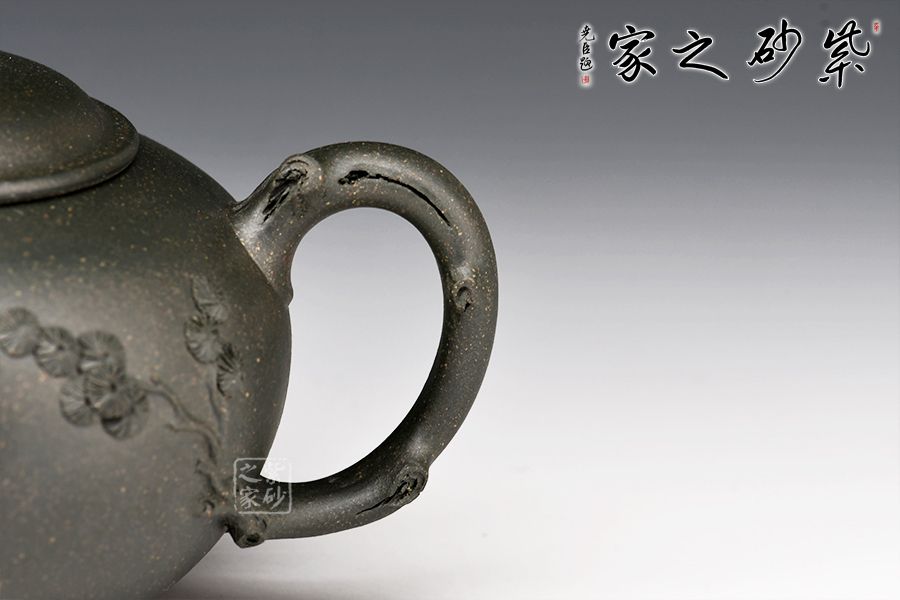 此壺清麗美觀,優(yōu)雅從容,為感悟生命的佳作。松為高潔的象征,運(yùn)用于紫砂壺中,更加美妙。壺型飽滿圓潤,壓蓋微鼓,壺鈕、壺把和壺嘴皆為松樹樹枝,設(shè)計(jì)新穎,別具一格。壺身貼花的三兩松針獨(dú)有韻味,整器氣韻盎然,值得把玩!