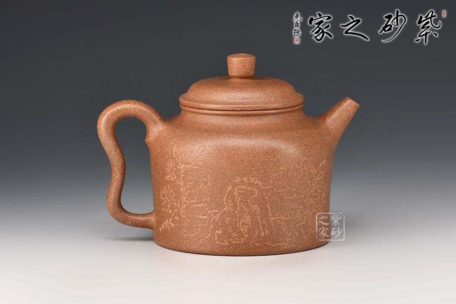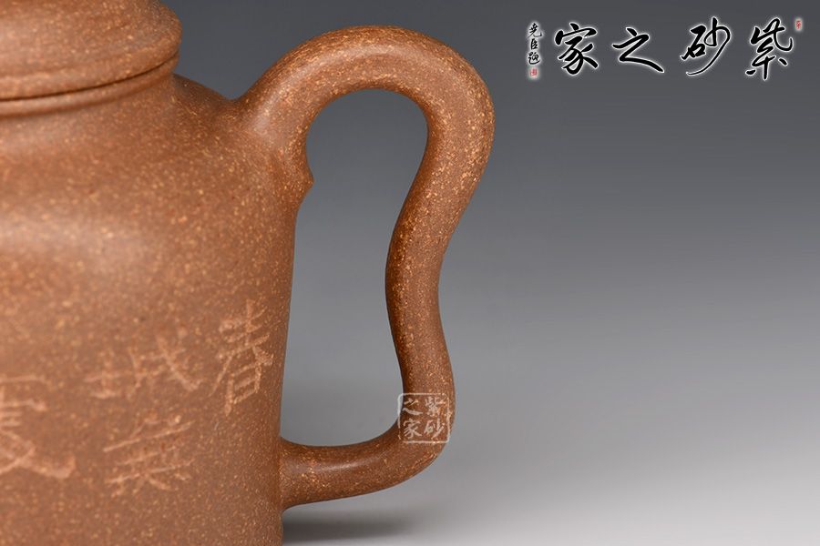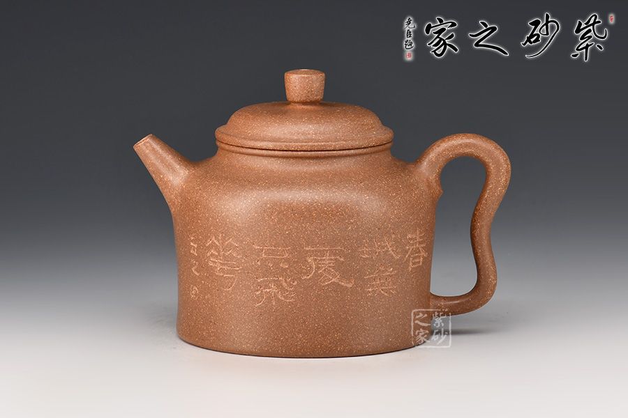 德鐘是紫砂光素器中的經(jīng)典器型之一,這款“德鐘”器形端莊穩(wěn)重,比例協(xié)調(diào),結(jié)構(gòu)嚴(yán)謹,造型簡潔質(zhì)樸;壺身挺括,壺蓋高聳,更添了一番清瘦高古之美;直流嘴堅挺而出,出水迅猛有力;端把耳形厚實,端握起來舒適有力;傳統(tǒng)壓蓋嚴(yán)絲合縫,氣密性良好,扁柱鈕與壺身造型相稱。壺身刻繪“春城無處不飛花”,此壺集實用賞玩于一體,值得推薦!