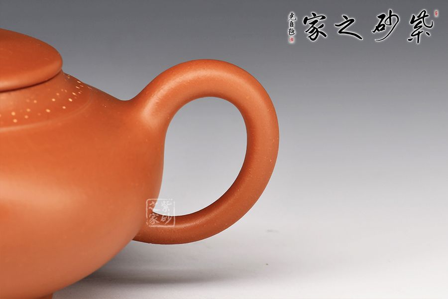李惠強(qiáng),高級工藝美術(shù)師,得汪寅仙親自指導(dǎo),后拜省大師儲立之為師。此壺壺身飽滿,直流嘴上翹,出水暴爽,耳形把抓握舒適,與壺嘴兩相呼應(yīng),張力十足,平蓋上為瑞獸壺鈕,壺頸處鋪砂工藝似繁星點(diǎn)點(diǎn),整壺氣韻飽滿,簡約大方,多之一分則多,少之一分則少,線條比例恰到好處,等有緣的朋友結(jié)緣!