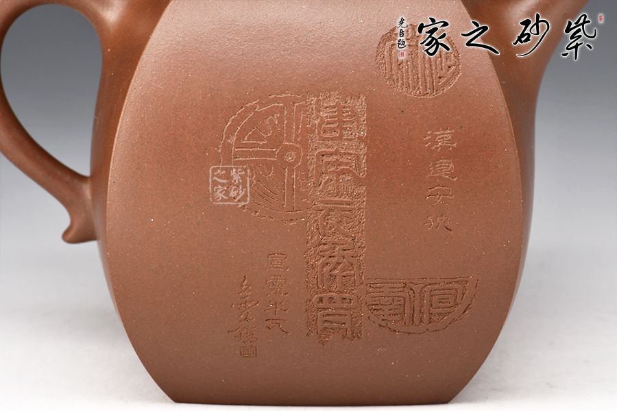 富入大萬精選文革紫泥全手工制作而成,泥色醇厚,透氣性佳。四方壺身,線條明凈爽朗,穩(wěn)重端莊之中不乏輕柔。口蓋平整嚴(yán)密,面面俱到,壺鈕為銅錢造型。